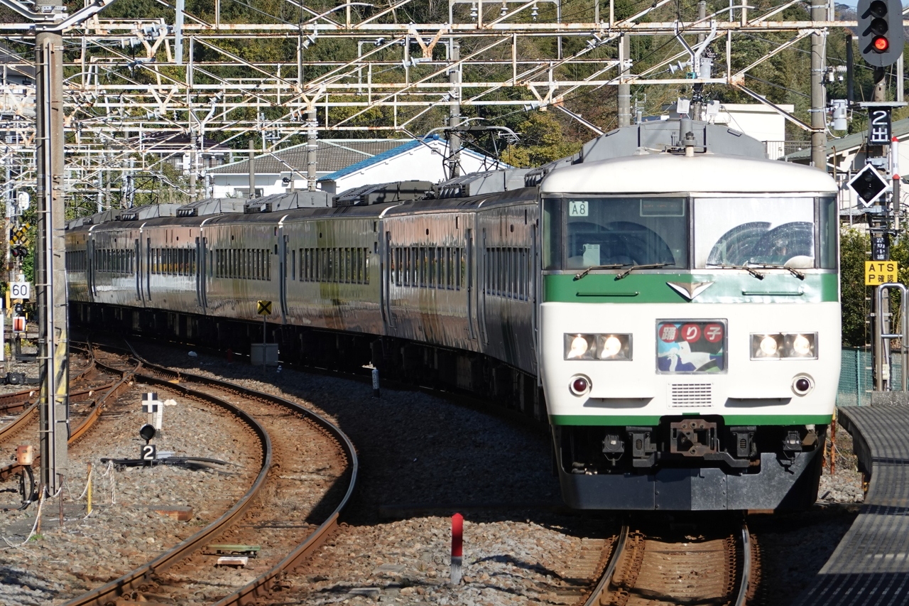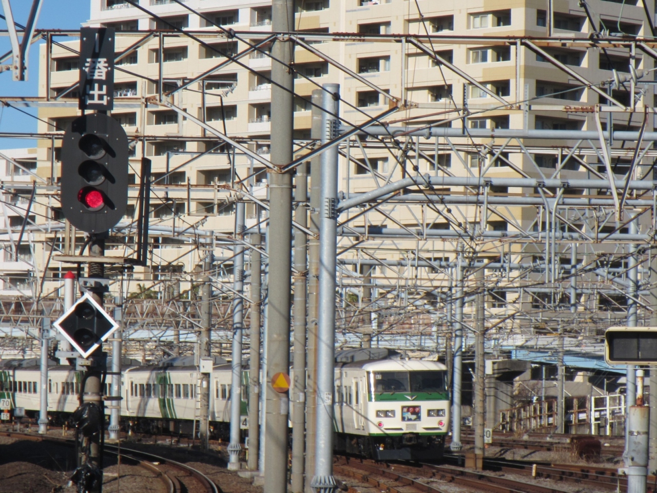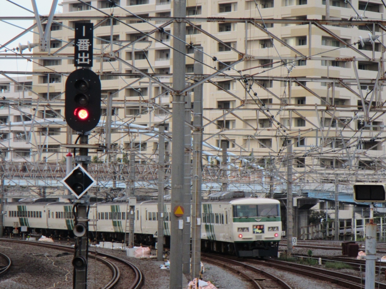 大船駅にて、踊り子105号伊豆急下田、修善寺行15両編成