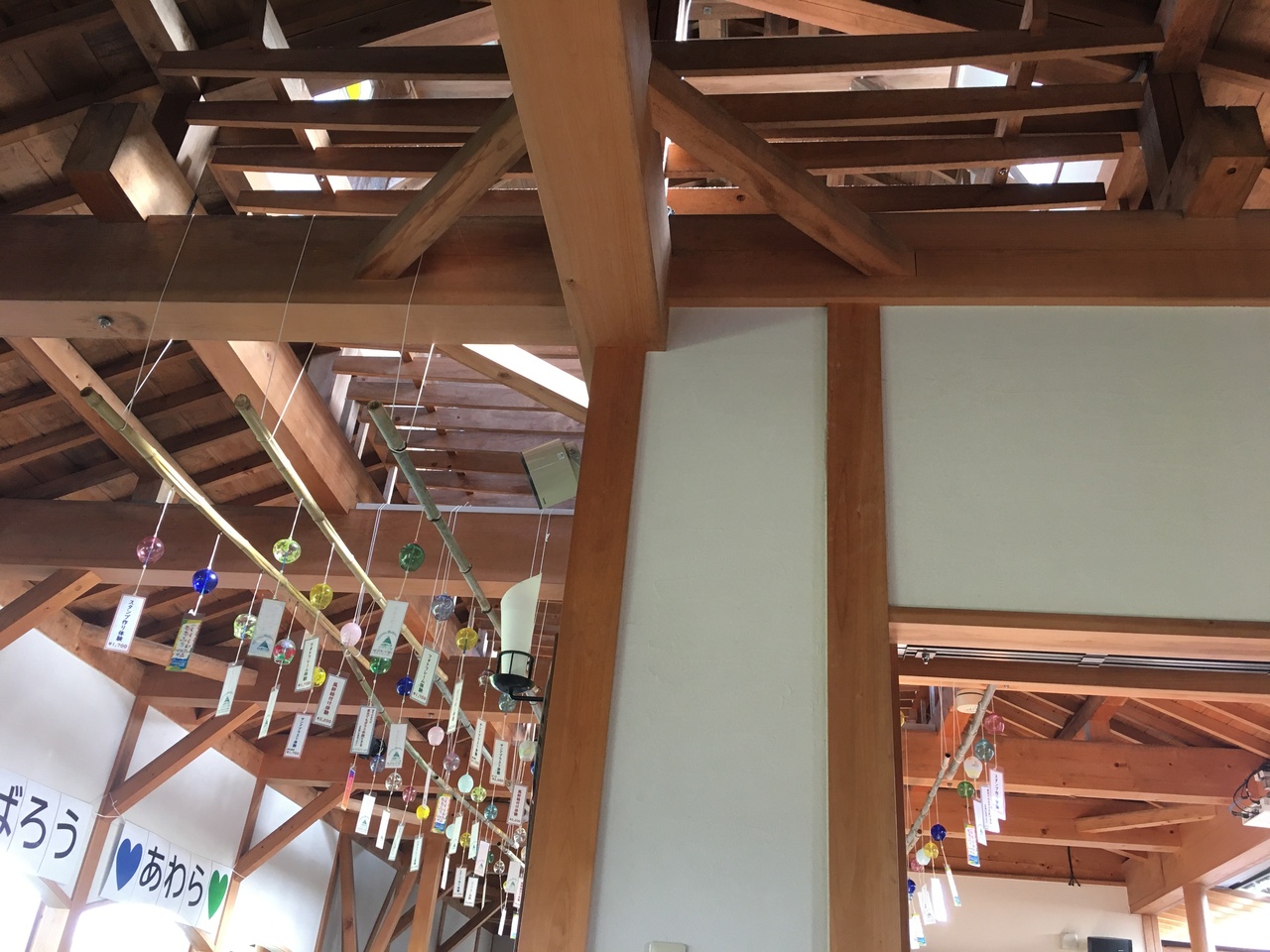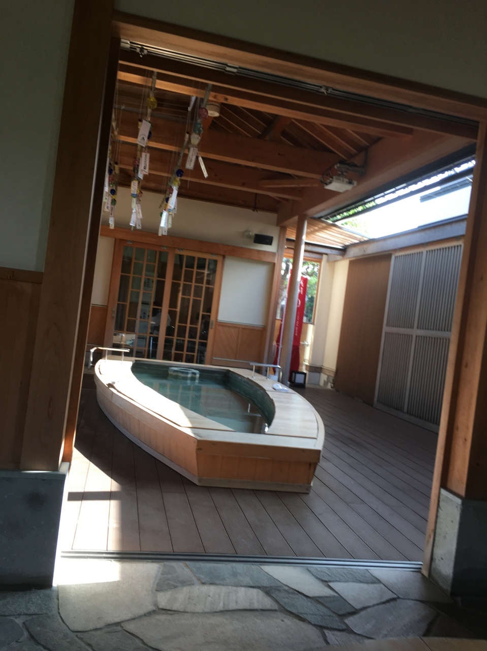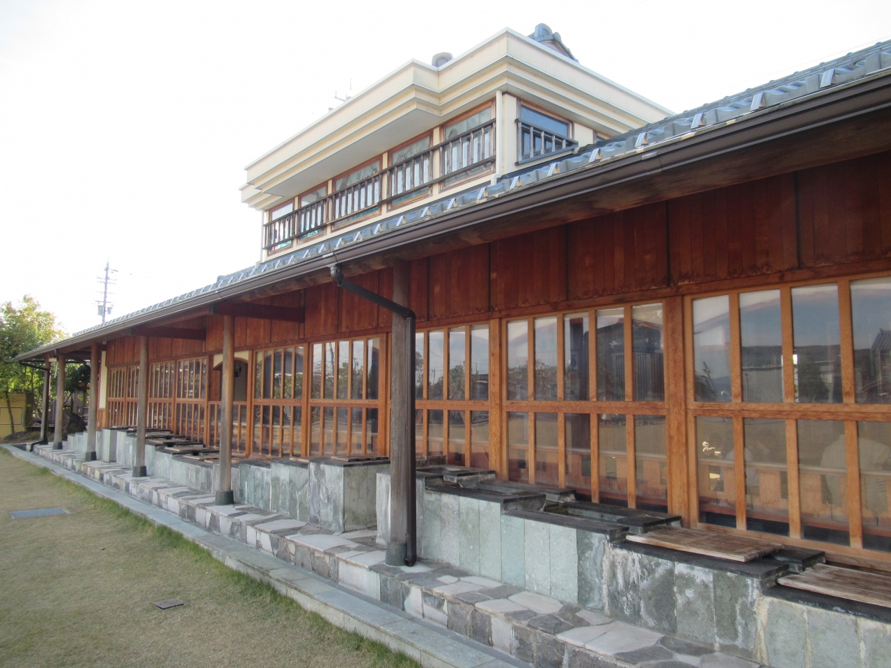 平成26年4月にあわら湯のまち広場にオープンした北陸一上質な芦湯(足湯)。建築様式は、芦原大火(昭和31年)以前の、伝統的な意匠と技法を取り入れた総檜(ヒノキ)の数寄屋造りとしました。屋根中央部には、明治・大正期にあわら温泉に現存した旅館の展望室を模した湯気抜き「湯けむり楼」を再現、ガラス部分には金津創作の森で製作したステンドグラスをはめこみました。 浴槽は全部で5つあり、2本の源泉を混ぜ合わせた3種類の温泉が楽しめます。