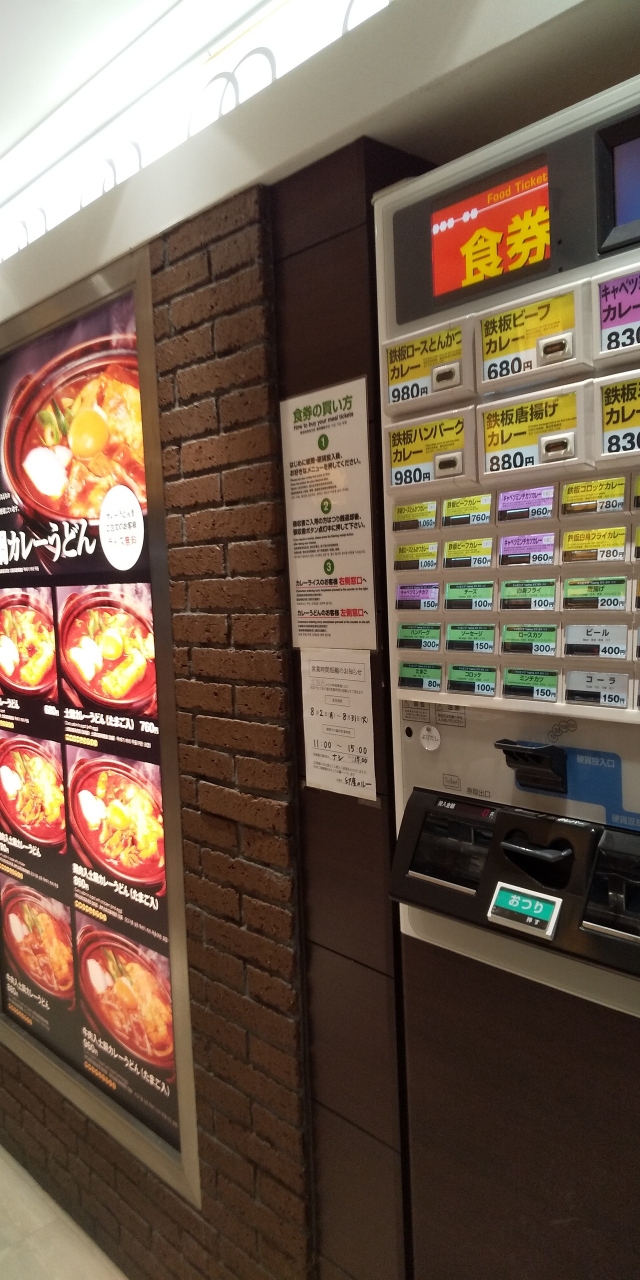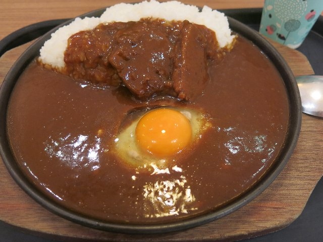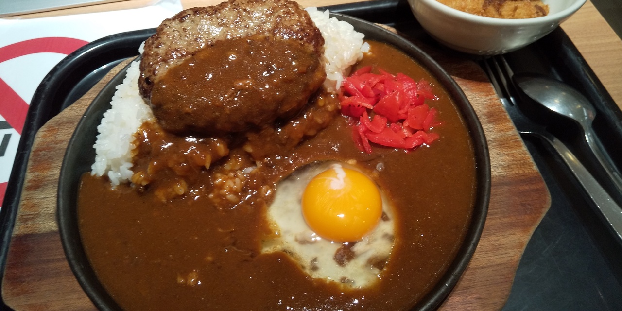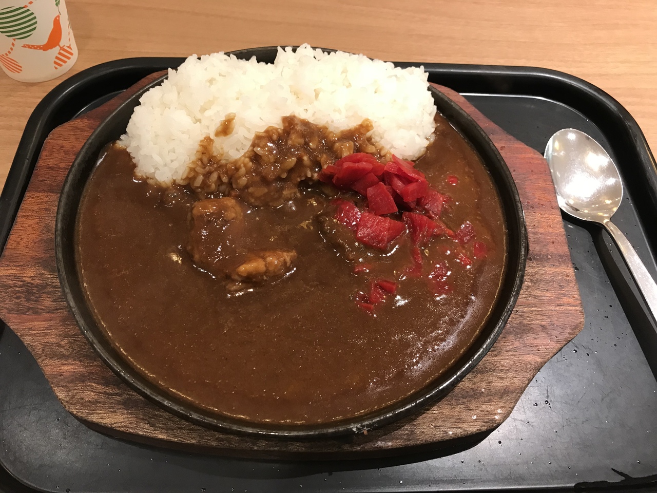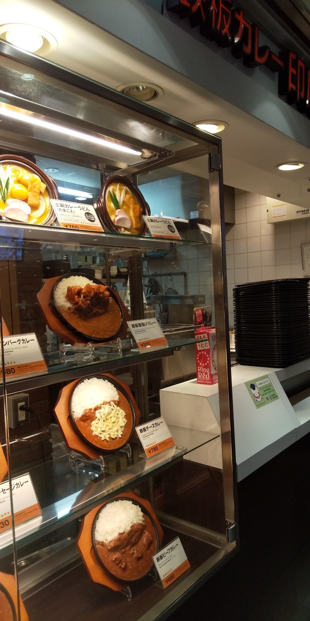 注文は食券制。カレーうどんにも惹かれるが、定番のビーフカレーを購入(ポークカレーは無い)。大阪のカレーライスの店らしく、生卵トッピングもOK(別料金)。なおフードコートなのか福神漬はカウンターでセルフにて。