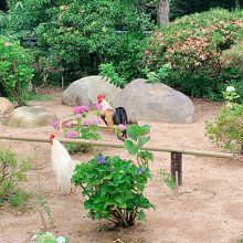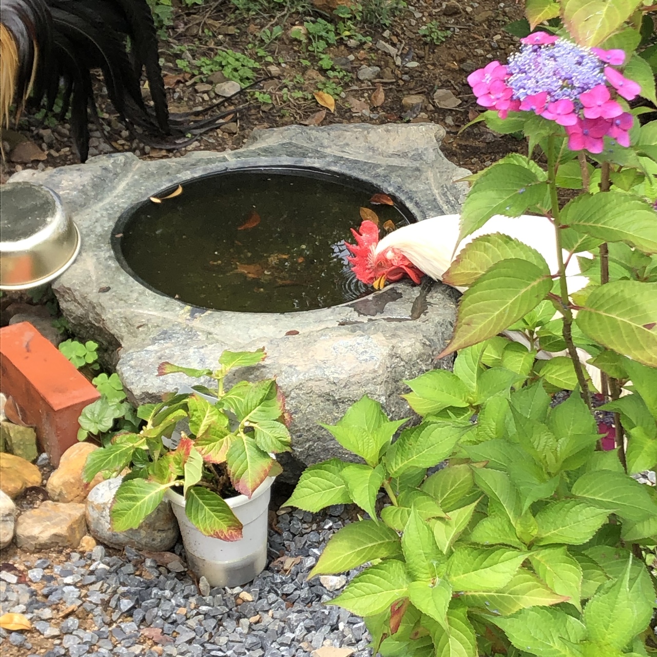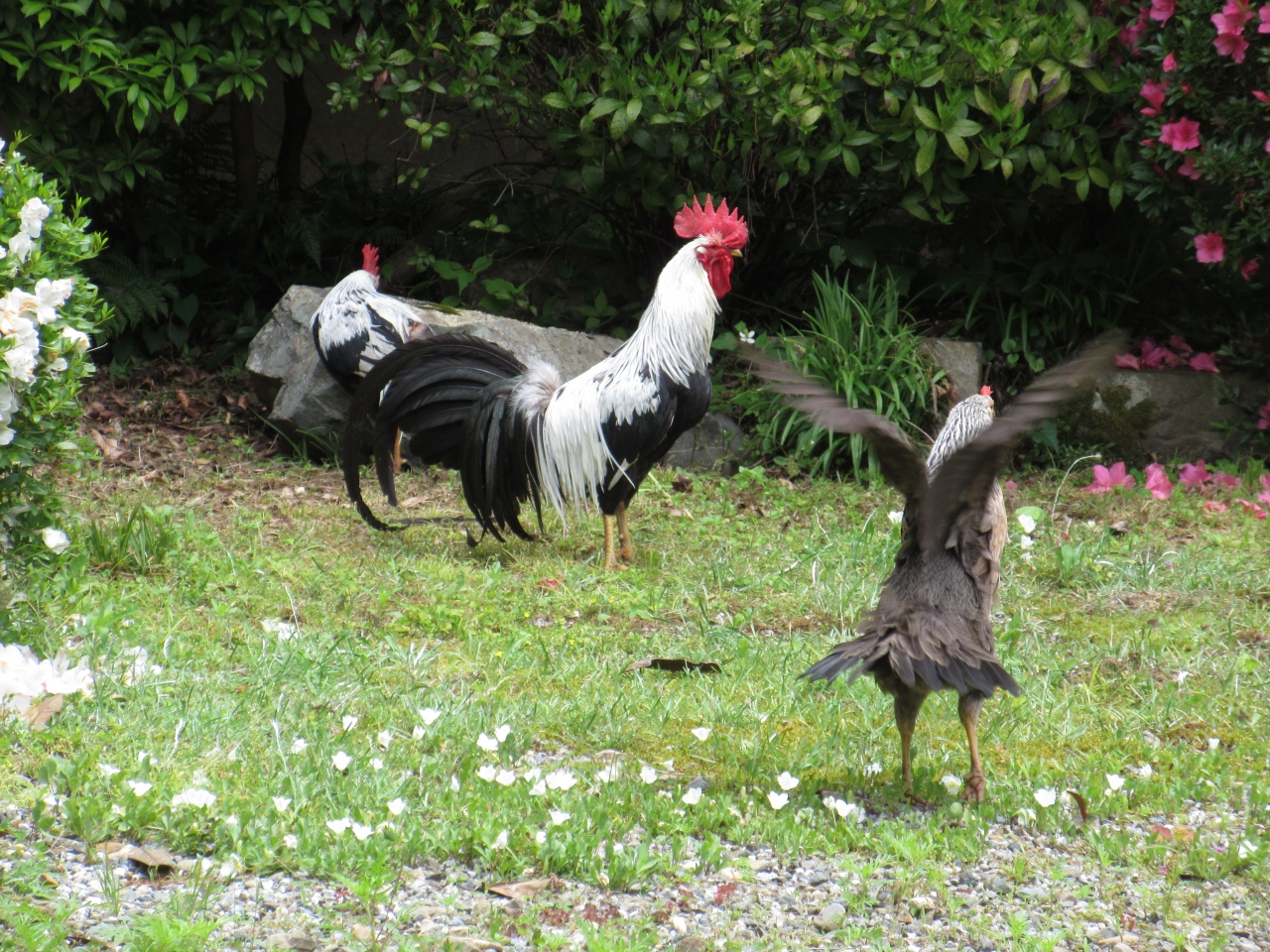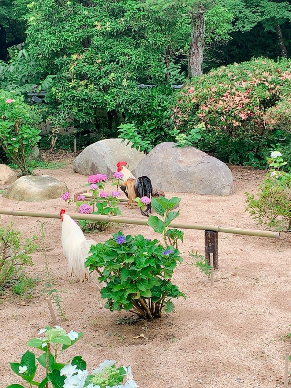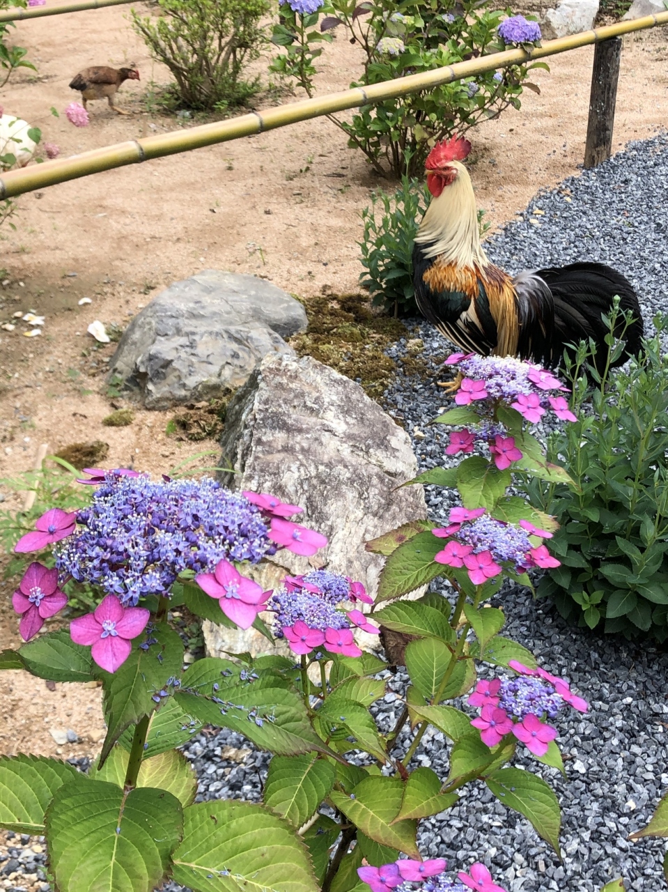 あじさいから開けた庭には数羽のニワトリが居てちょっと驚きました。