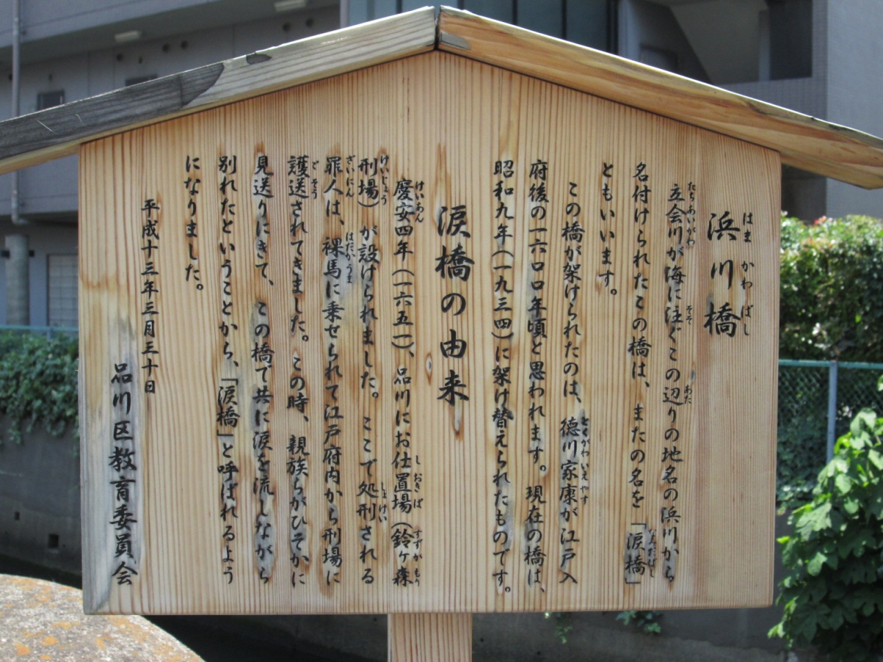 罪人と親族・知人は、鈴ヶ森刑場へと続くこの橋(泪橋)が最期の別れの場であったと。
