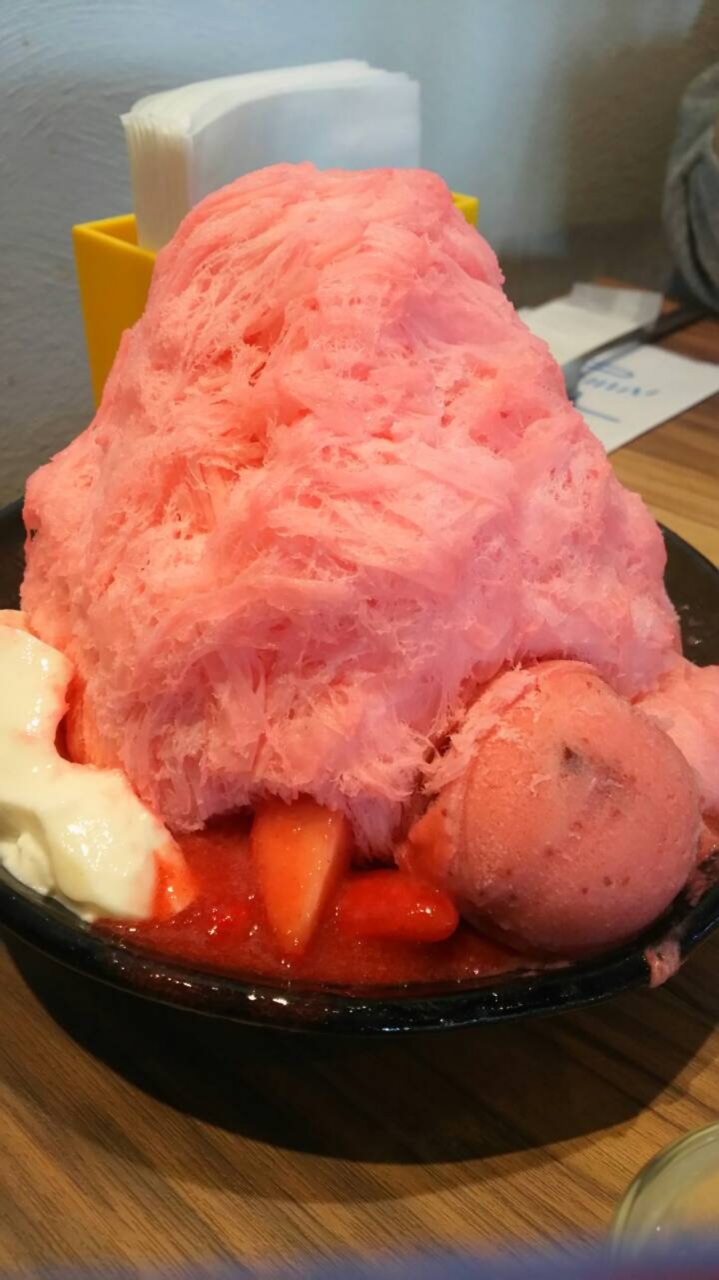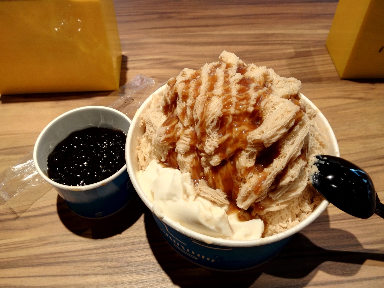 マンゴーと迷いましたがタピオカティーのかき氷を注文。