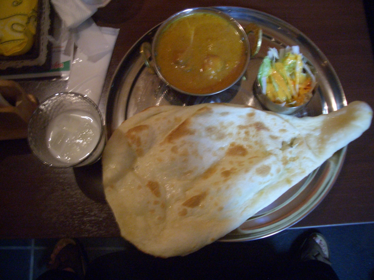 Bセットを食べましたが、二種類のカレー、サラダ、たっぷり大きなナンとサフランライス、そしてラッシーというボリュームたっぷりの内容で、味もお腹も大満足でした。