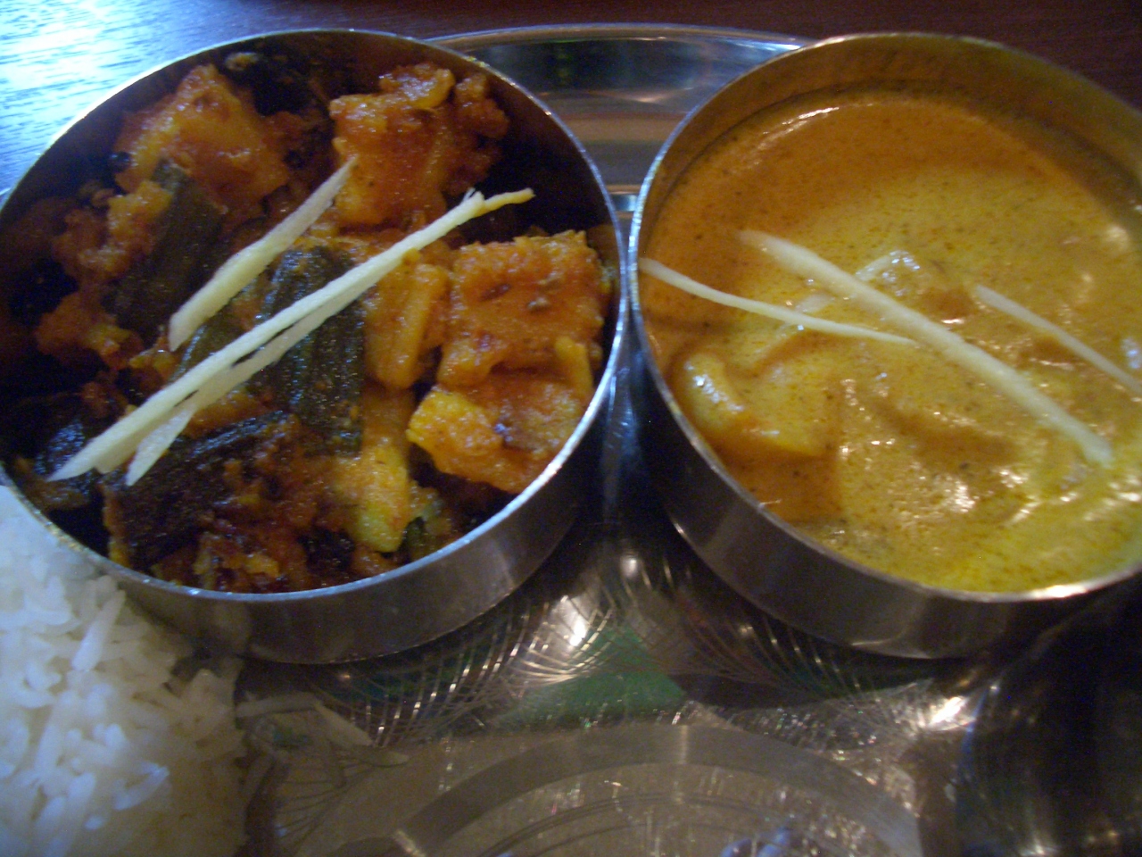 海老&マッシュルームのカレーはココナツベースで甘いのですが、ちゃんとスパイスしています。辛味は無いので辛いのが好きな人は物足りないかも。私は超好みど真ん中の味&香りでした。サブジも美味しかった。オクラとカレーって合うよね。どちらもライスよりは粉物の主食の方が合うかも?バスマティ食べたかったから良いけどね。ラッシーも優しい甘さで美味しかった~。