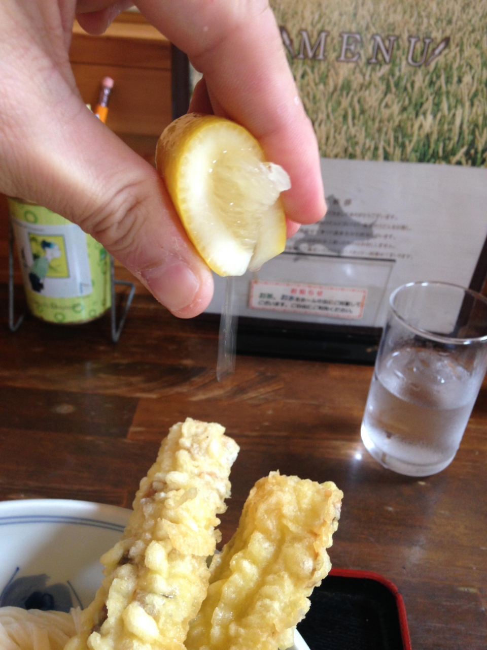 天麩羅にレモン汁を絞っていただきまーす( ^)o(^ )