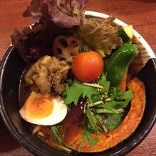 お昼に行きましたが、ギリギリ並ばずに入れました。私たちのあとから来た方は並んでいました。野菜がたくさん入っていて、一つ一つ...  続きを読むが甘みがあり美味しかったです。スープはスタンダードなものを選びましたが追加料金を支払えば他の種類も選べるようでした。また行きたいです。  閉じる