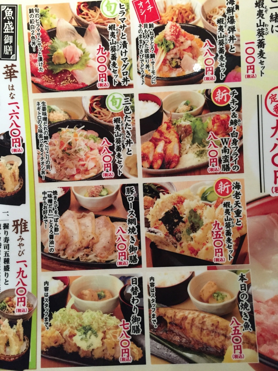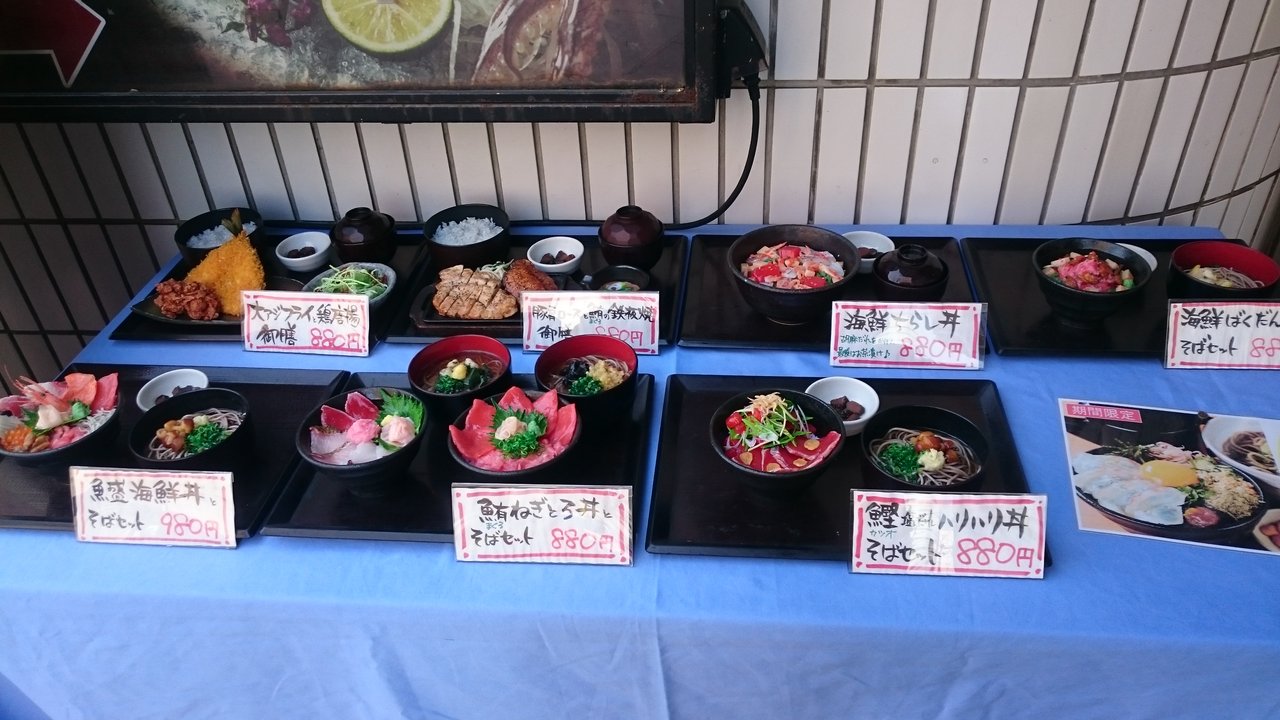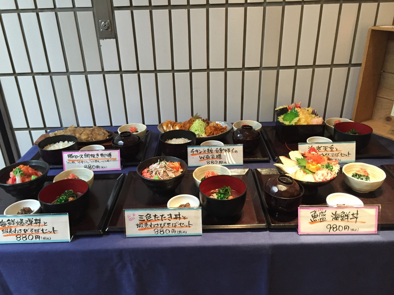 店の入り口の前にランチ料理の見本がずらっと綺麗に飾られて食欲をかき立てます。