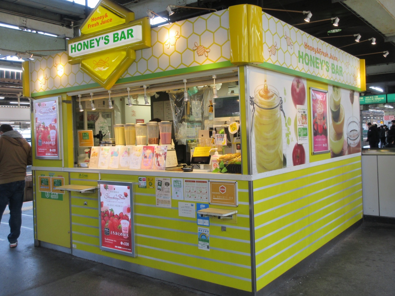駅のホームで美味しいフレッシュジュースが飲めます。
