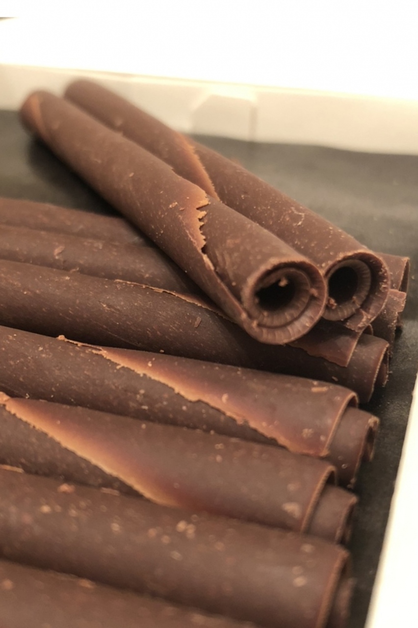 店内は広いのに、扱っている商品は極わずかです。看板商品である、シガールチョコレートとシガールホワイトの試食をさせてくれます。良く練ったチョコレートを薄く延ばして 巻いた煙草のようなチョコなのですが、一本ずつ手作業で巻いているそうです。