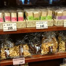 フィナンシェ等の焼き菓子や、様々な味のおかきや、かりんとう、おせんべい、