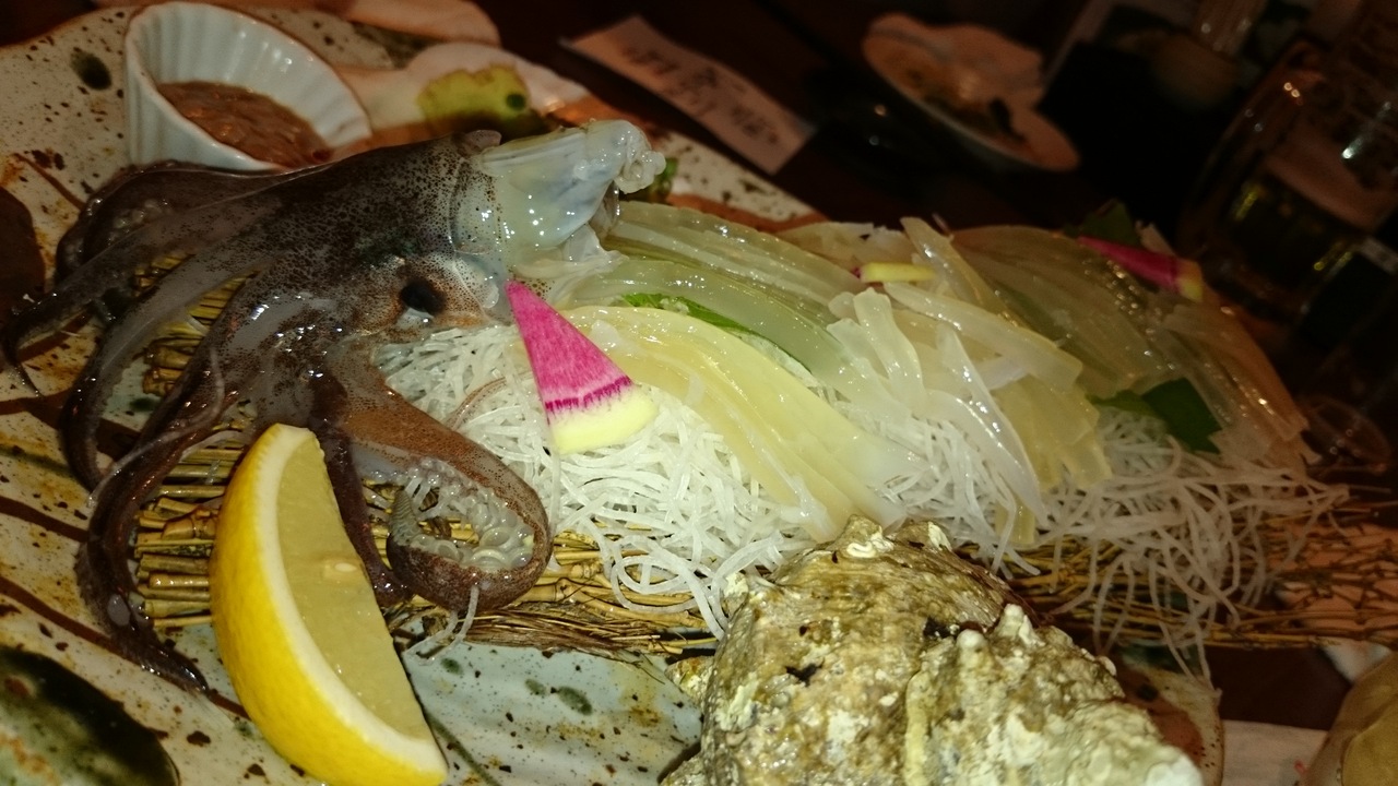 生きたイカの造りが凄い、新鮮で美味しい。他にもホタテ、マグロ等の海鮮メニューが素晴らしい、宴会できる居酒屋。