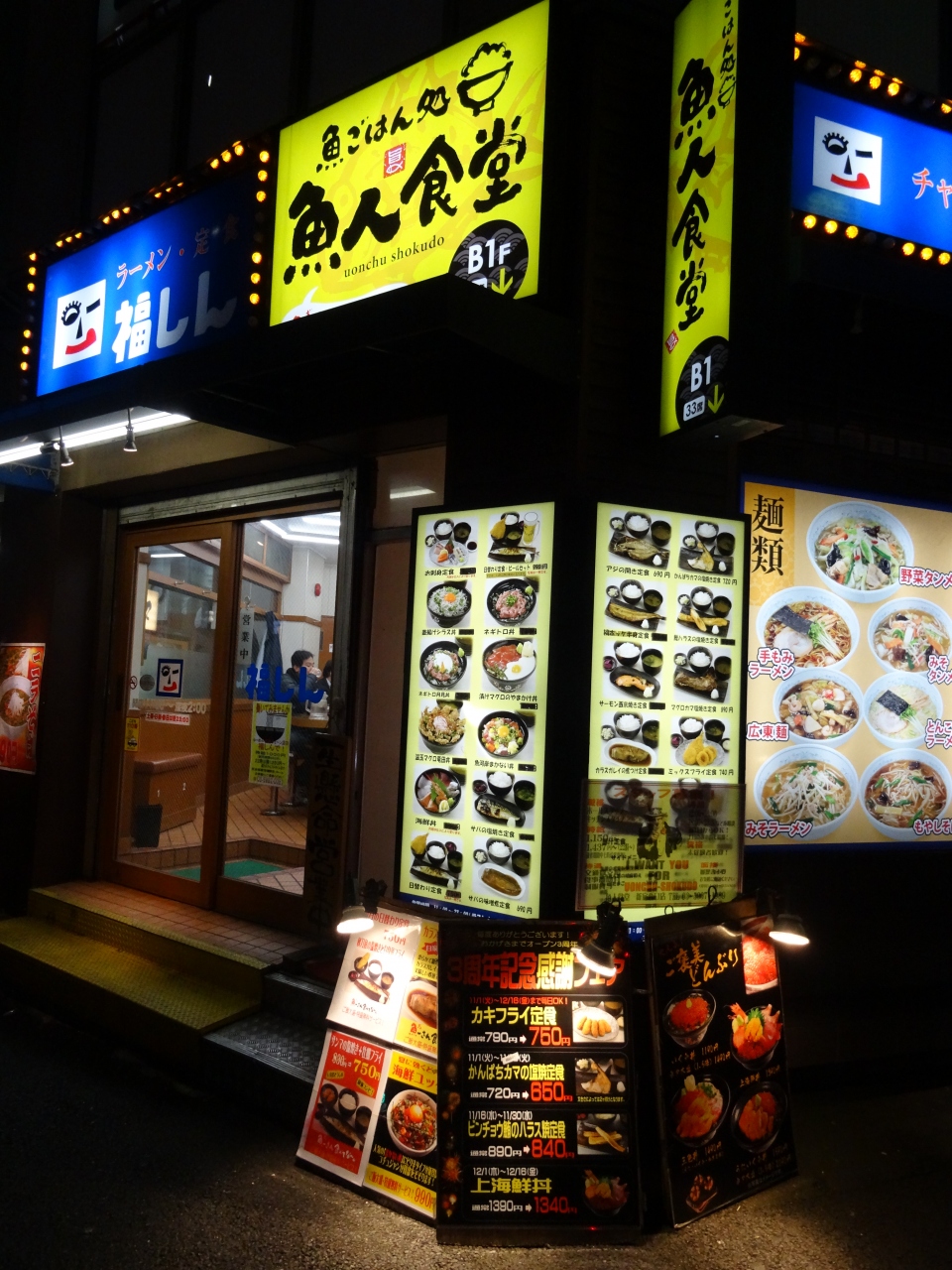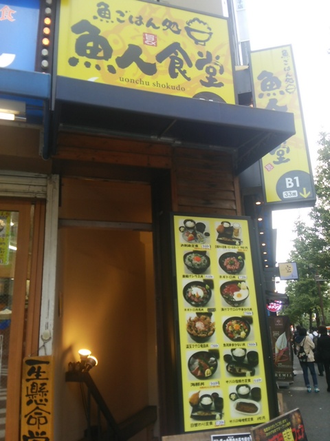 新宿小滝橋通りにある刺身、焼魚、煮魚など魚料理専門の定食屋。「うおんちゅしょくどう」と読むらしい。