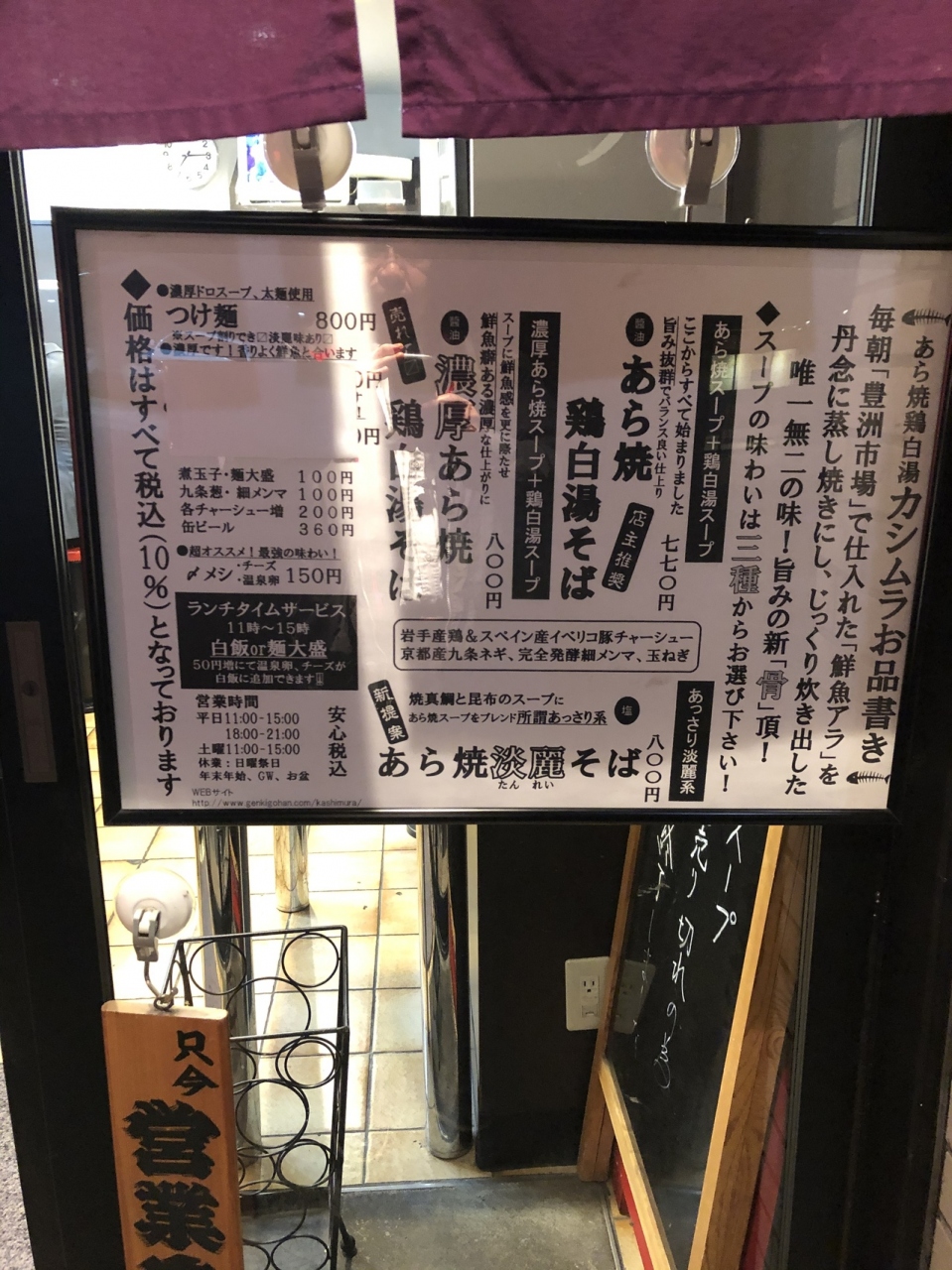 券売機一番左のトップ…濃厚アラ焼き白湯そば ¥800-の食券を購入した