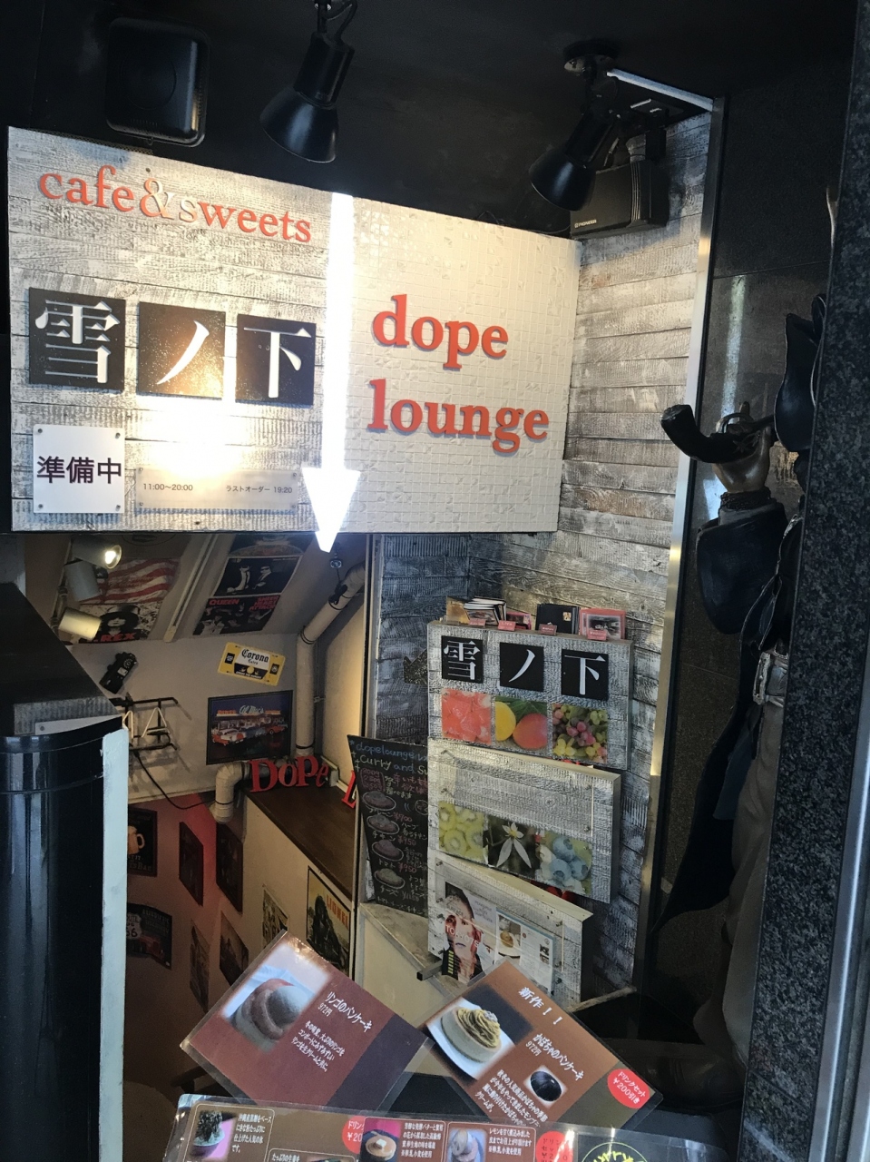 ライブなどが行える地下のイベントスペースが、日中は雪の下カフェとして営業しています。訪れた時間帯は、岩合さんの猫番組の映... 続きを読む像が流されていました。