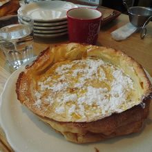 ダッチベイビーは出来上がるとバターと粉砂糖、仕上げにレモンをかけてくれます。