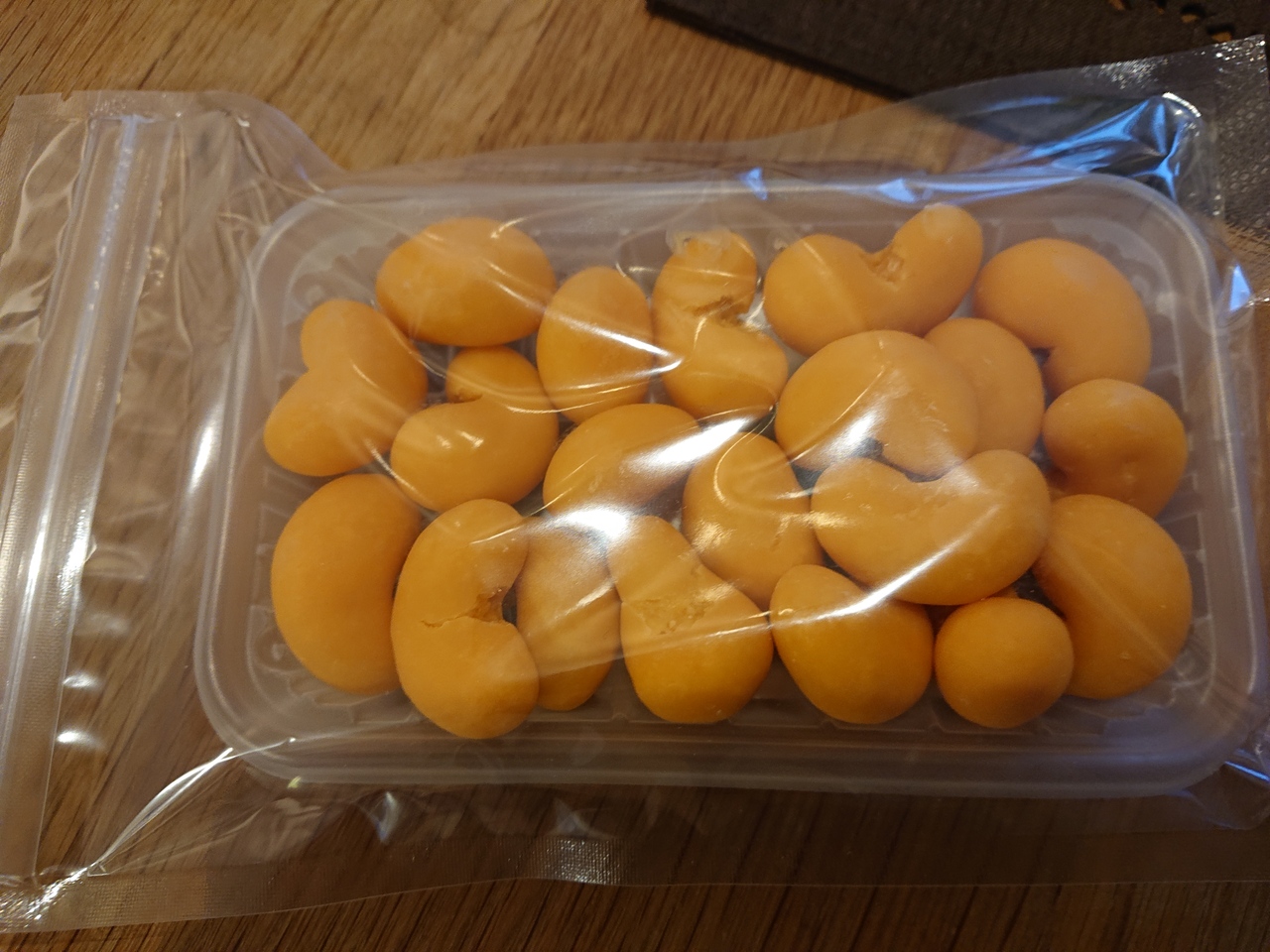 チェダーチーズカシューナッツなるものを買って見ましたが、濃厚チーズに上品なナッツ。なんかあとひく癖になる味。もっとたくさん買えばよかった。