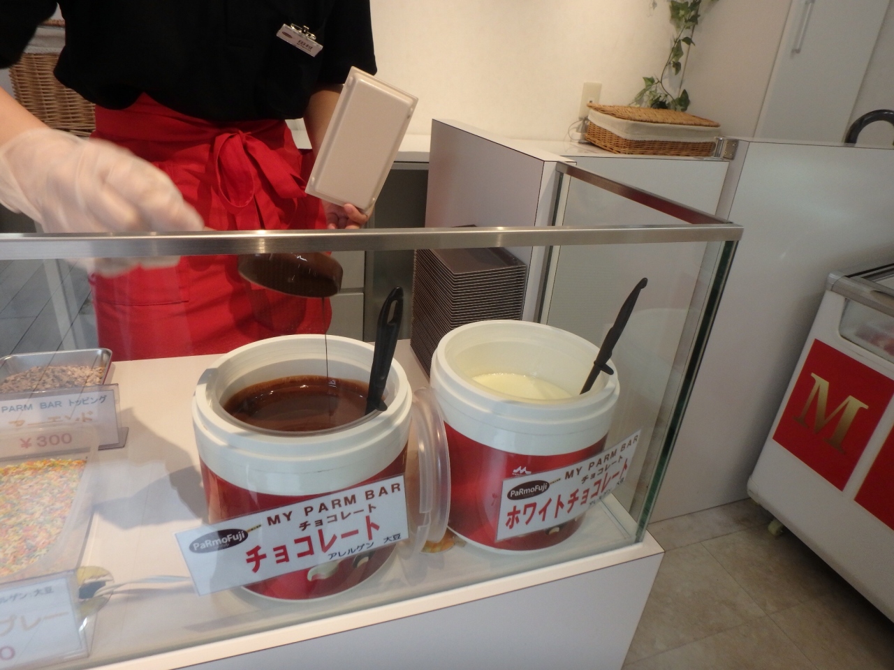 本体(バニラ、ストロベリー、チョコの3種類)を選び、チョココーティングを