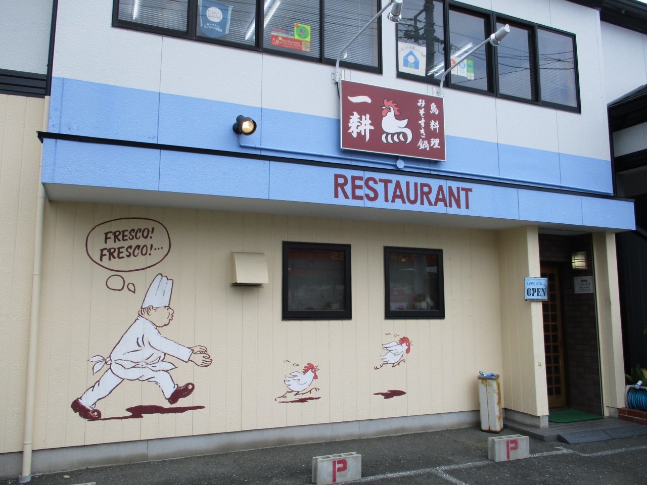 お店の壁に描かれた鳥のアートが良い味出しています。