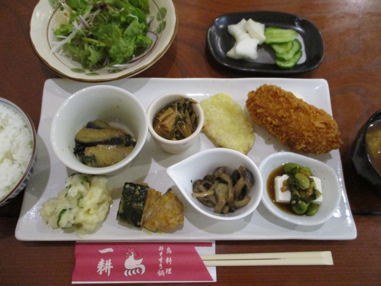 とり天が付いて、メインはなく、サラダとご飯、味噌汁、