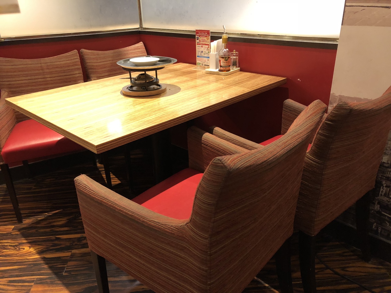各テーブルにある焜炉にのせたピザ