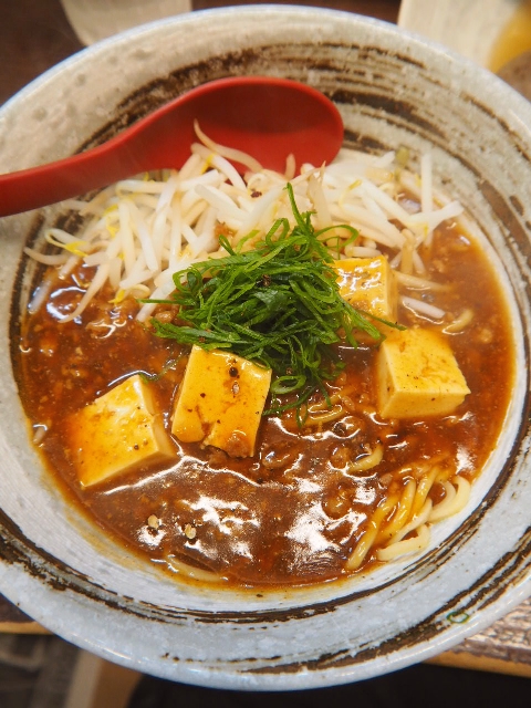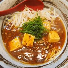 通常のラーメンに、麻婆豆腐をたっぷりと掛けている。