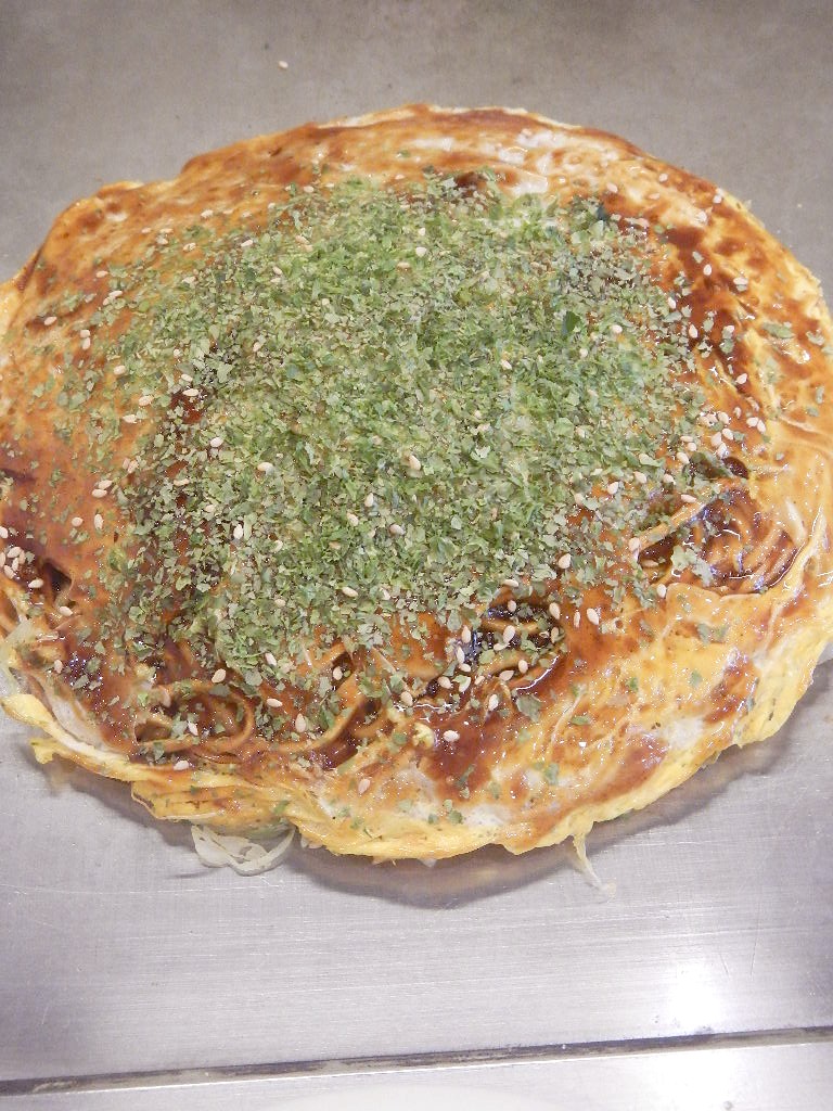 ピリ辛麺を使っているとあって、麺だけ食べると辛いと感じるが、キャベツや生地や肉と一緒に食べるとかなり緩和される。 閉じる投稿日:2017/01/27