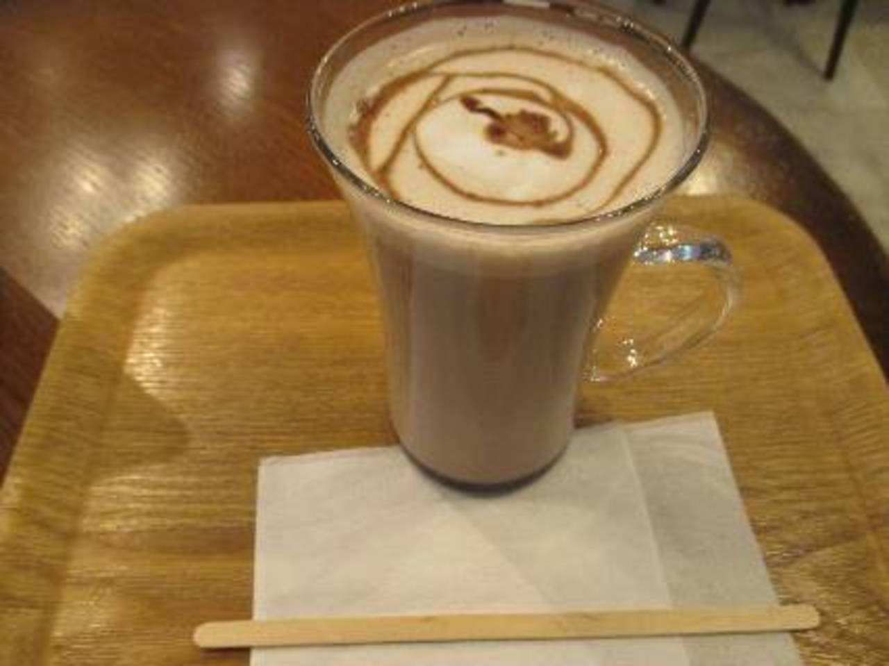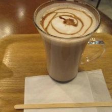 ホットココアをいただきました。300円です。ガラスがおしゃれです。✨