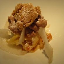 口の中に広がる芳香、歯ごたえ、絶妙なスパイスの加減。こんなにおいしいイベリコ豚は初めて。調理の仕方がいいのですね。カワハギのフリットも揚げ具合がよくとてもおいしかった。自然と笑みがこぼれてしまいます。