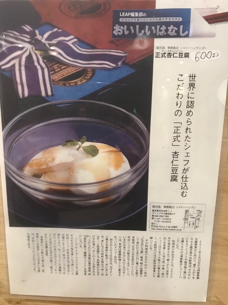 杏仁豆腐はお店の名前の由来にもなっているのでしょうか ? 自慢の一品のようなので、1つだけ食後にいただきました