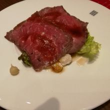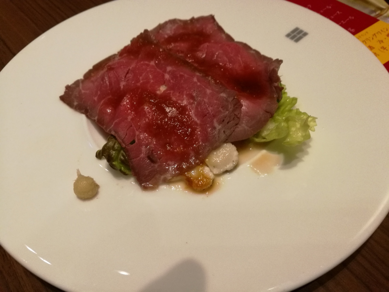 薄切りのローストビーフは、仕込みから4日もかけて仕上げているという事で、とても柔らかなうえに赤身の部分を使用しているのでヘルシーです。