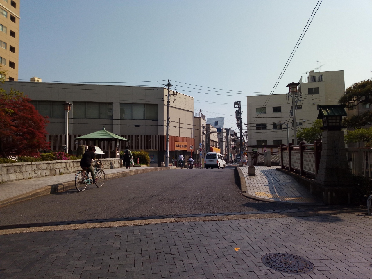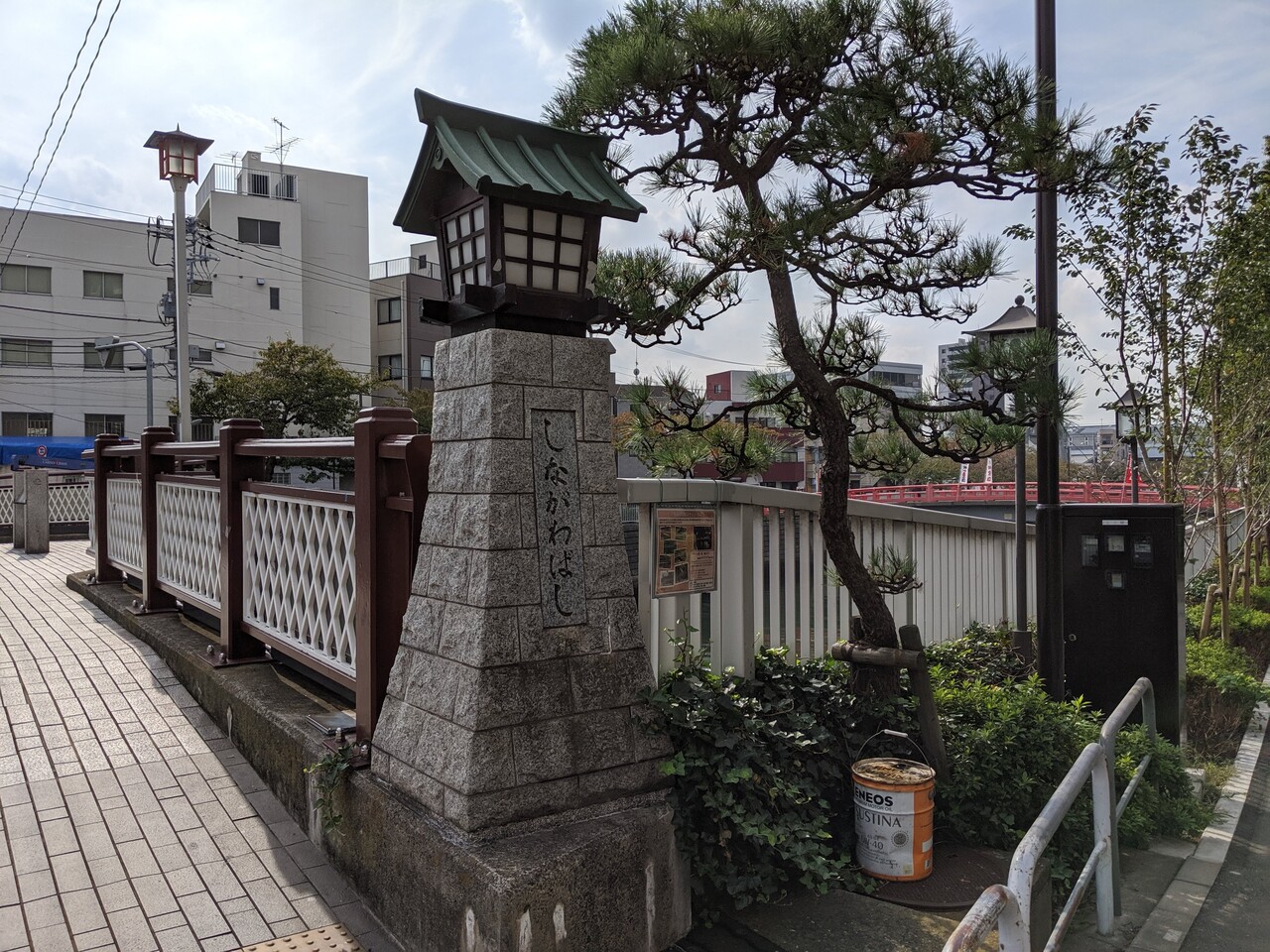 橋には石灯籠を模した親柱が設置されていました。
