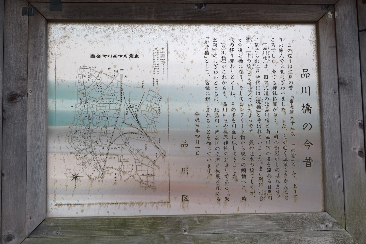 旧東海道の品川宿内にこの橋は架かります。品川宿は、北品川と南品川に分けられますが、その間を流れる目黒川に架かっていることか... 続きを読むら、かつては境橋と呼ばれていたそうです。そういう来歴を思うと、かつてはこの橋を往来していたであろう旅人の姿もなんとなく髣髴とされます。橋のたもとには案内板もあり、桜の木もあります。桜の季節には、趣のある風景を見せてくれると思います。 閉じる