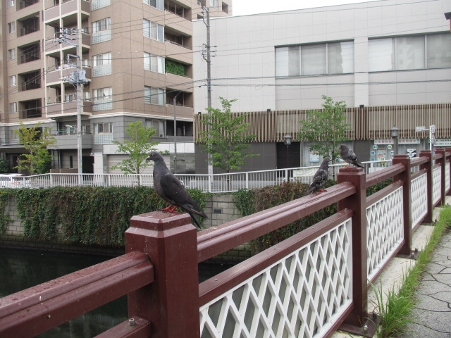 鳩も欄干に止まって休憩してます。