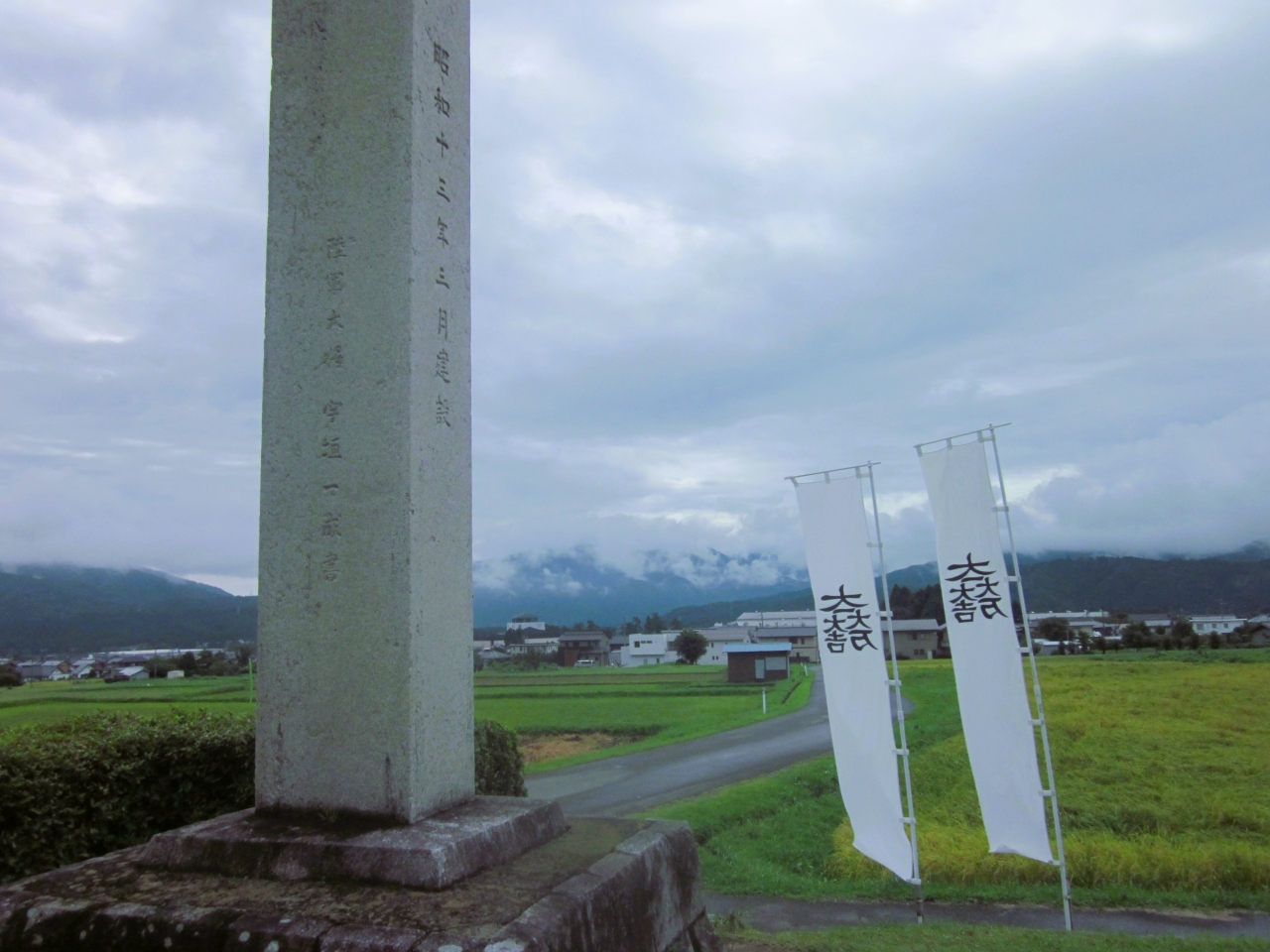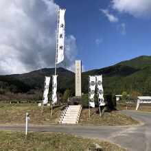今は静かで平和な様子の中に石碑があります。