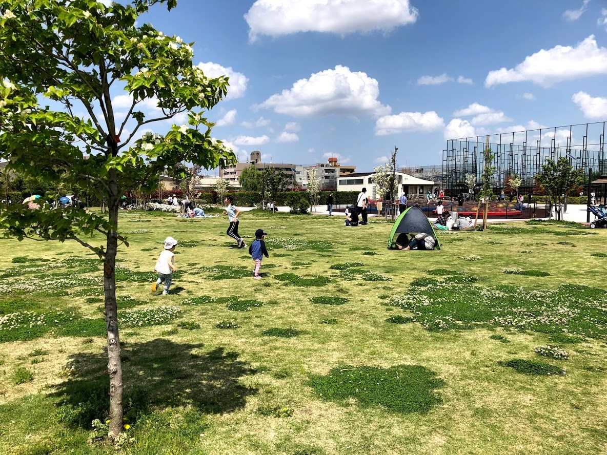 芝生や、遊具が安全な作りになっているので、小さい子供も安心して遊べます。