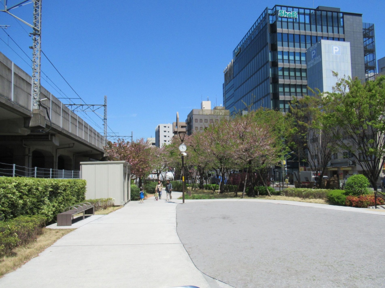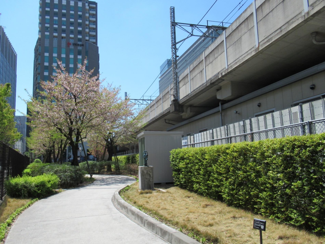 一方、反対 (東) 側の高架橋沿いには台東区立秋葉原練塀公園があり、あまり広くないが緑豊かで通路も広場も良く整備され、ベンチもあるので一休みするのに都合良いところです。