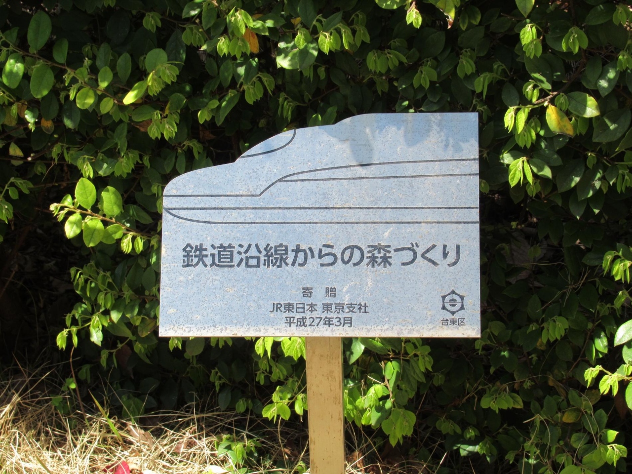 ところで、北 (御徒町駅) 側出入口近くに「鉄道沿線からの森づくり」との小さな立札があるのに気付き良く見ると、平成27年にJR東日本が寄贈の旨記されており、JR東日本も森づくりに力を入れているんだ と思ったところです。