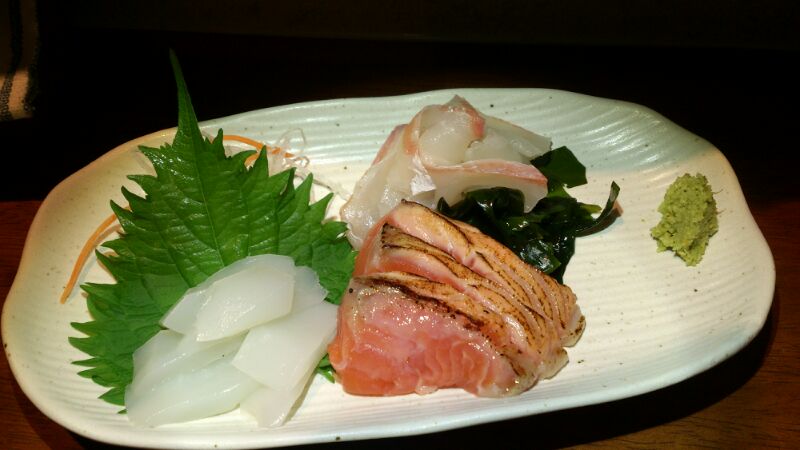 とりわけお造りの炙りサーモン・ハモ天ぷら・角煮・チーズフライが