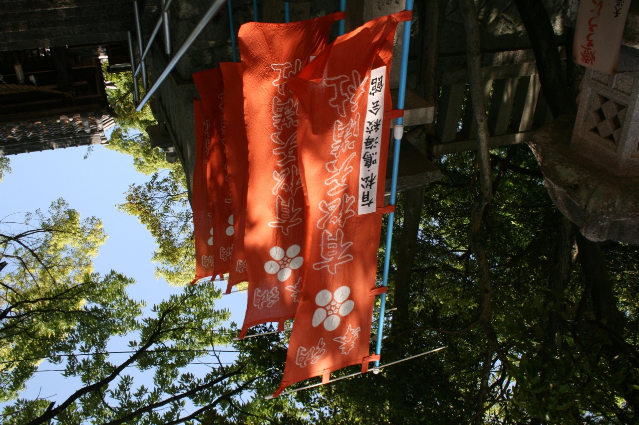 赤と青ののぼり旗 有松・鳴海絞り