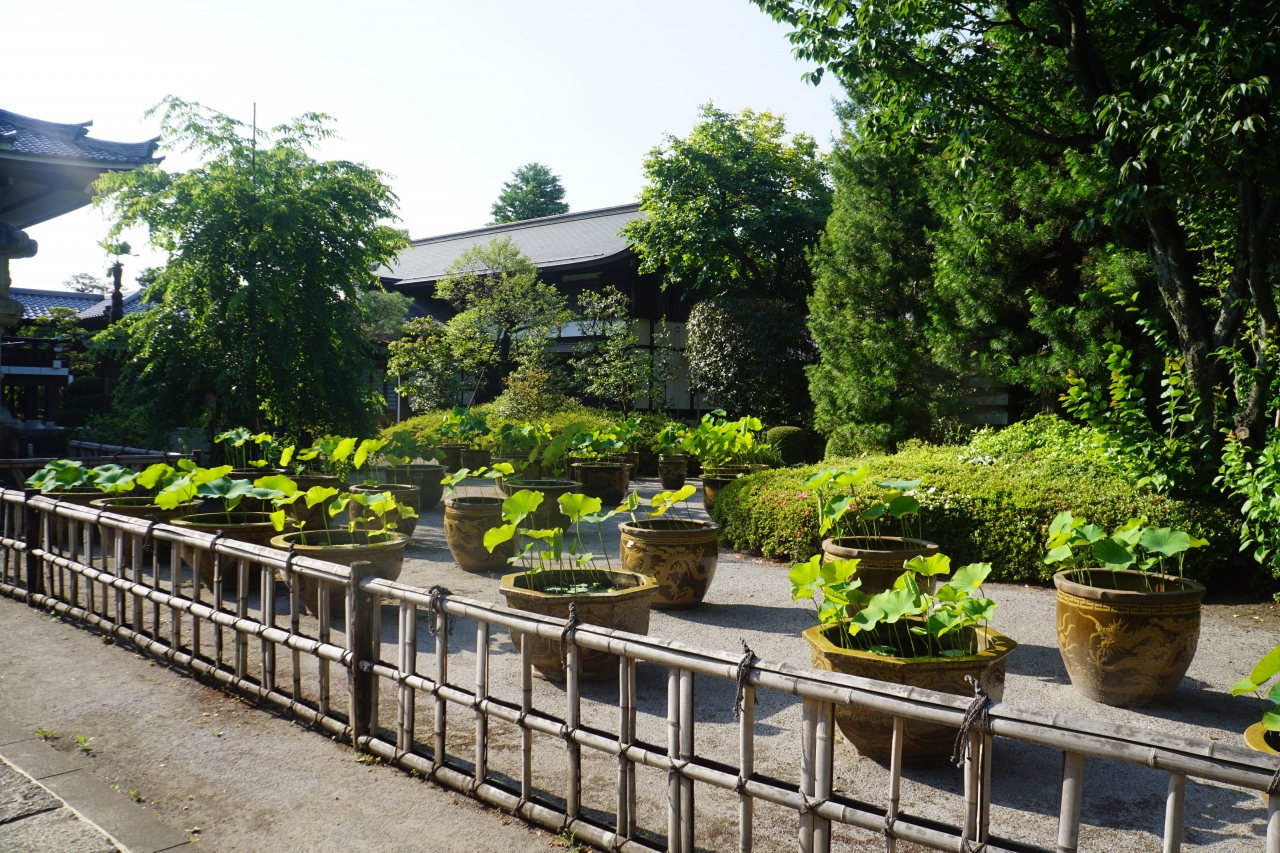 一面に蓮鉢が置かれていて