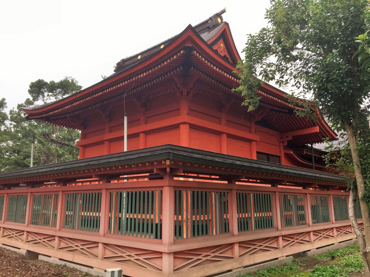社殿が新しく、屋根の銅板がまだ赤かったです。社殿も朱塗りのため、華やかさを感じました。なお、本殿は室町時代中期の建造物だそうで、国の重要文化財に指定されています。