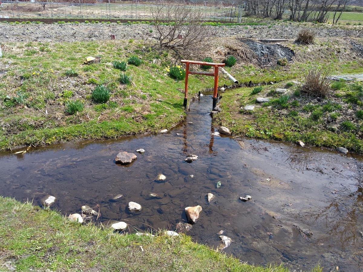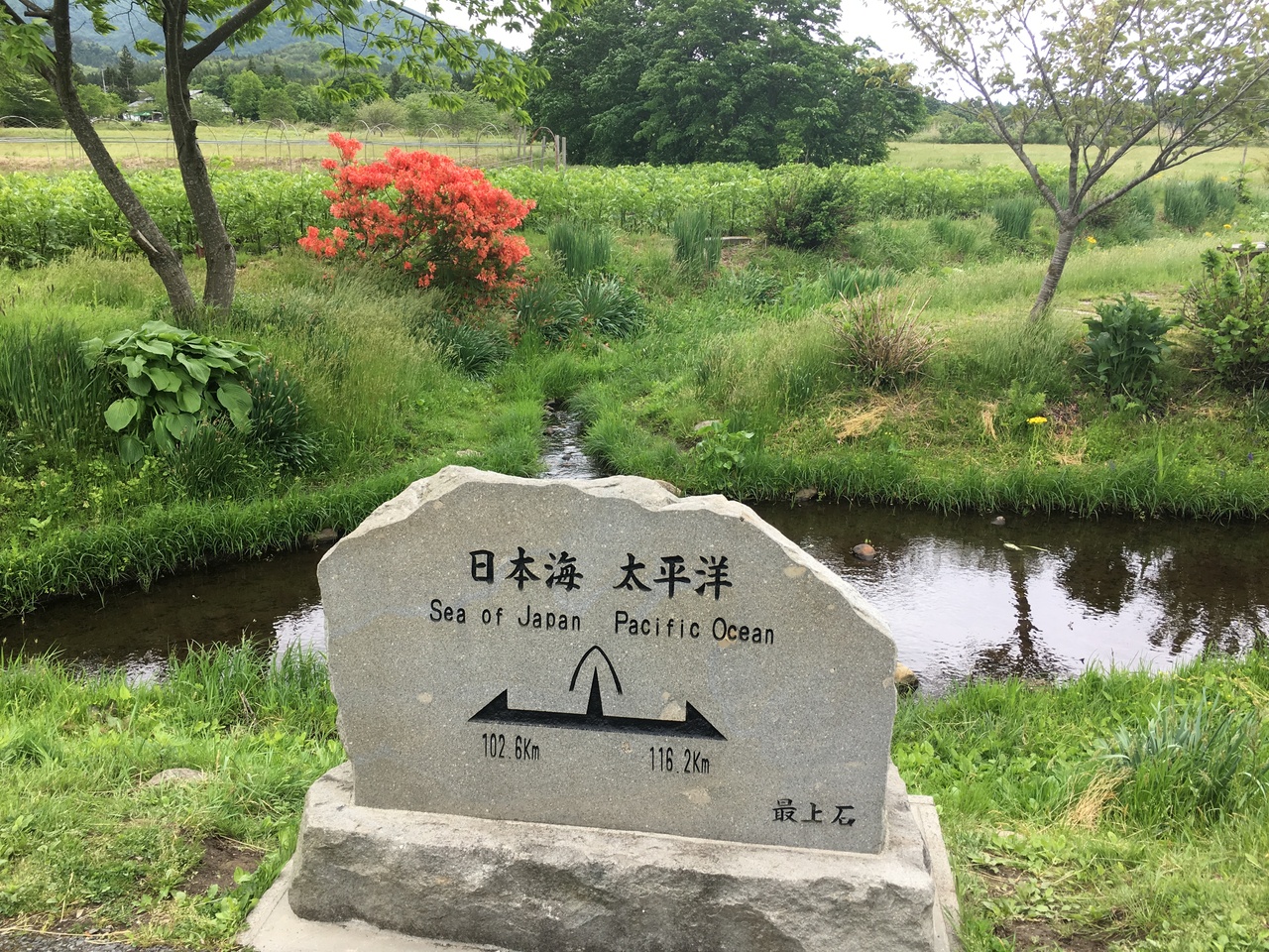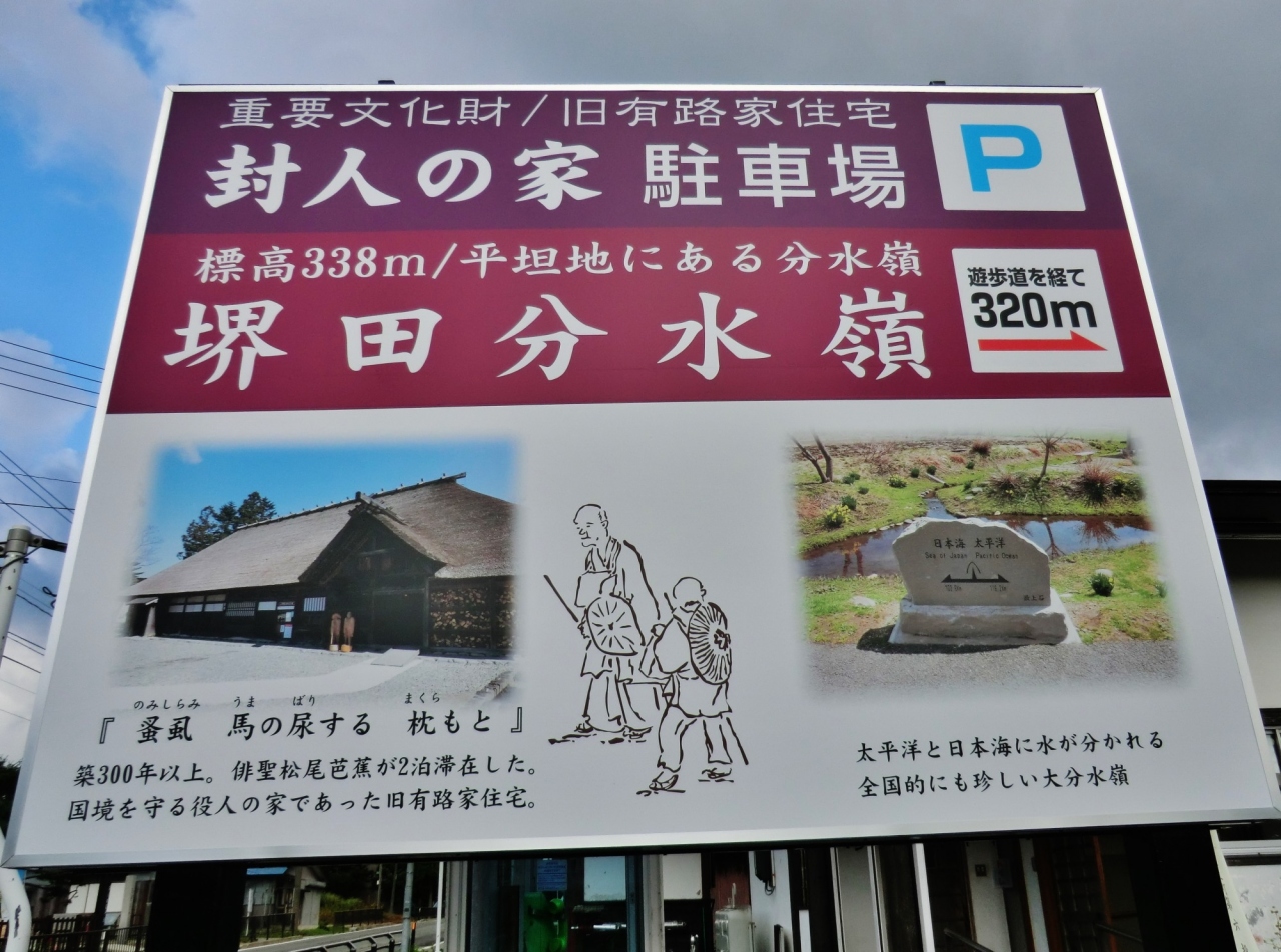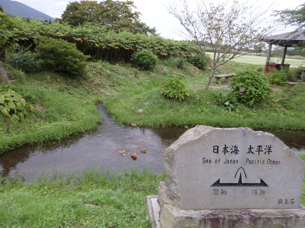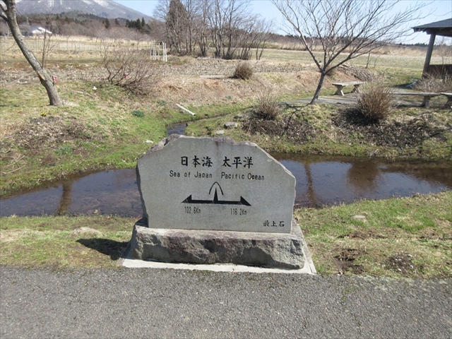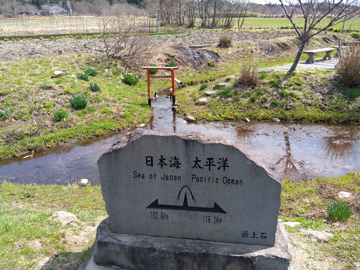降った雨が小川となり、東は太平洋へ西は日本海へ分かれて下るのが見れる場所 封人の家から田園風景を見ながら散歩推奨