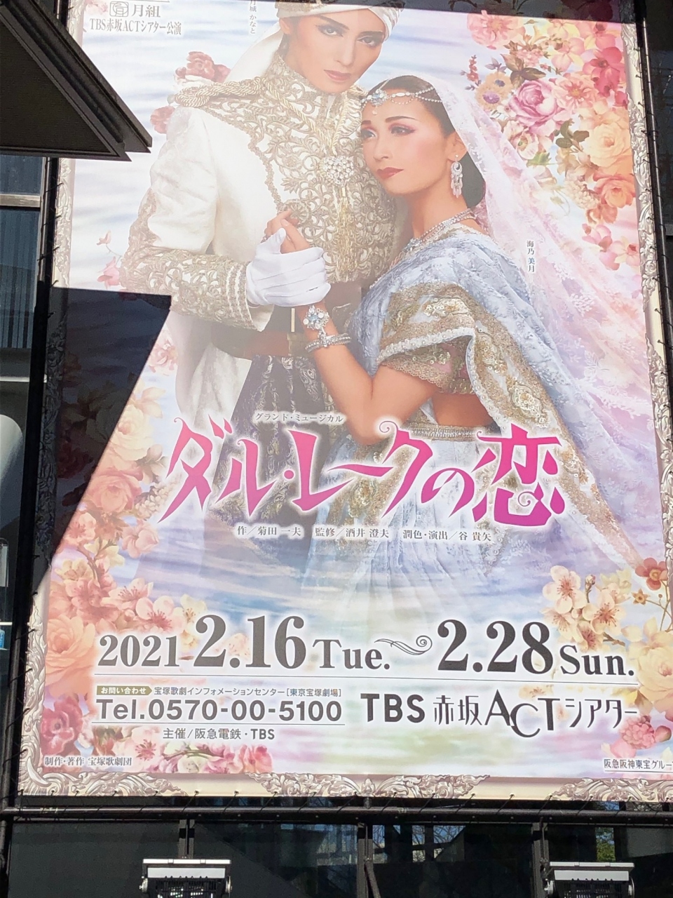 2021年2月下旬、宝塚月組公演『ダル・レークの恋』をD列上手からとQ列下手からの2回観劇しました。