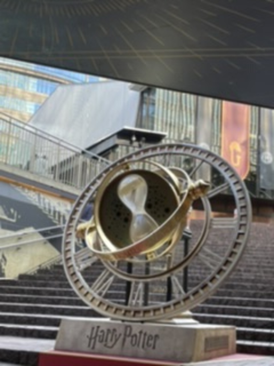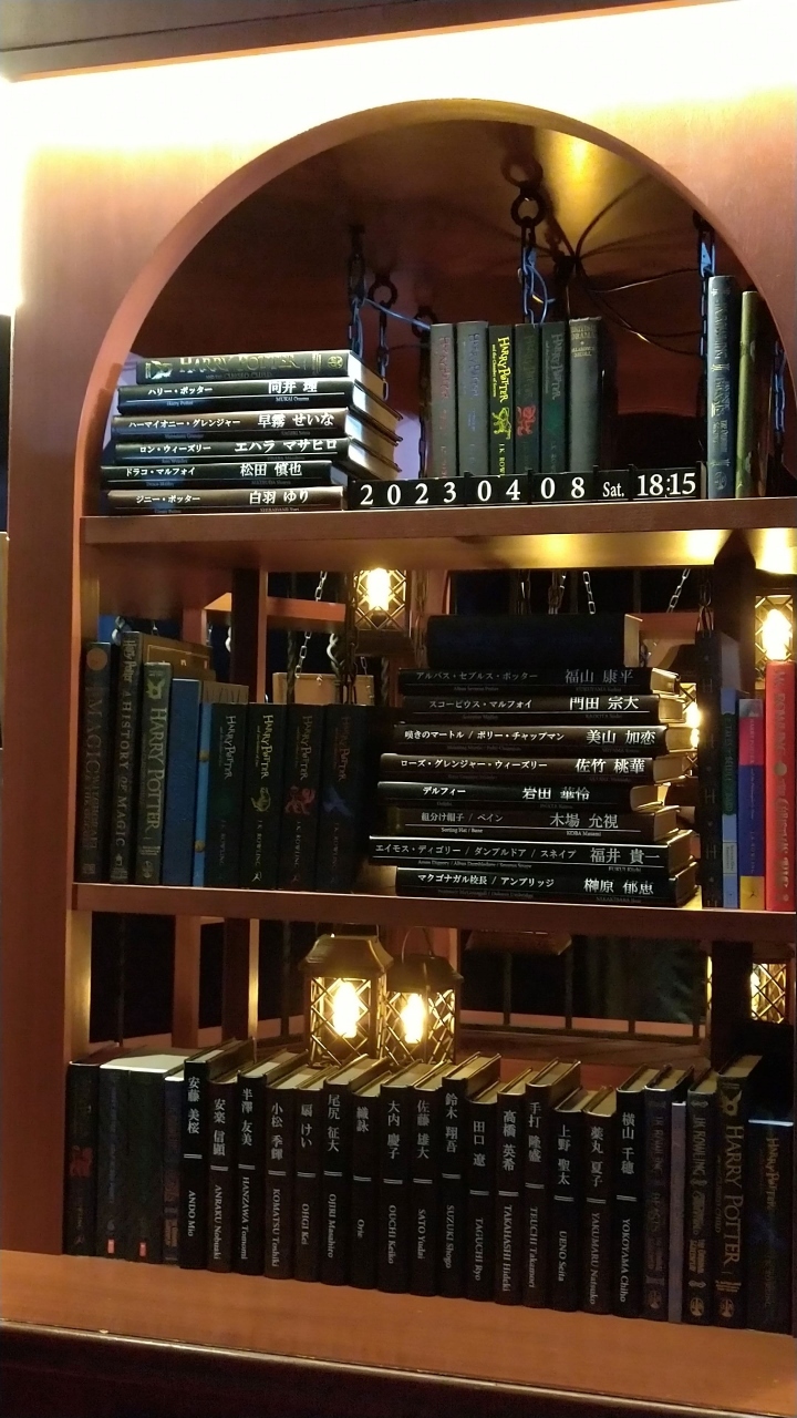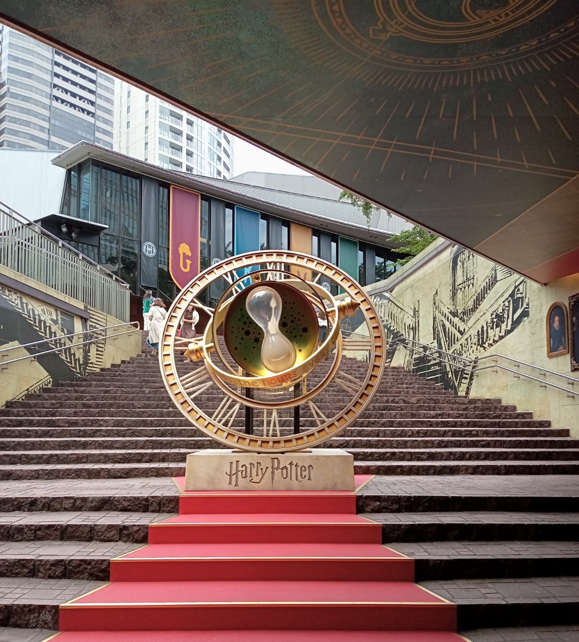 東京メトロ赤坂駅からの階段には登場人物の肖像画が書かれていて、タイムターナー(逆転時計)が展示されていて、すでに「ハリー・ポッター」の世界が始まっています。タイムターナーでは写真を撮る人が並んでいたので、写真を撮りたい場合は時間に余裕を持って行った方がいいです。