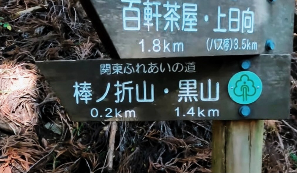 川井駅からバスに乗り上日向バス停まで移動できます。ここから棒ノ折山に登るルートです。暫くすると山葵が栽培されている場所を通... 続きを読む過します。ここを抜けると杉林の中に入っていき急登が始まります。至る所に根っこがあり歩きにくさがあります。かなりの急登なので運動不足の登山者は下を向いて歩くことになると思います。トレースが微かに残っているだけなので、ルートを確認しつつ周囲や頂上方向を確認しながら歩くことで安全な山行となります。棒ノ折山からは黒山や岩茸石山や惣岳山といった山を越えて下山します。獲得標高1200メートルほどなので登山初心者や運動不足の人には足の負担が大きいルートで山行中に捻挫といった怪我をする可能性があります。これらの方には適さないルートです。 閉じる