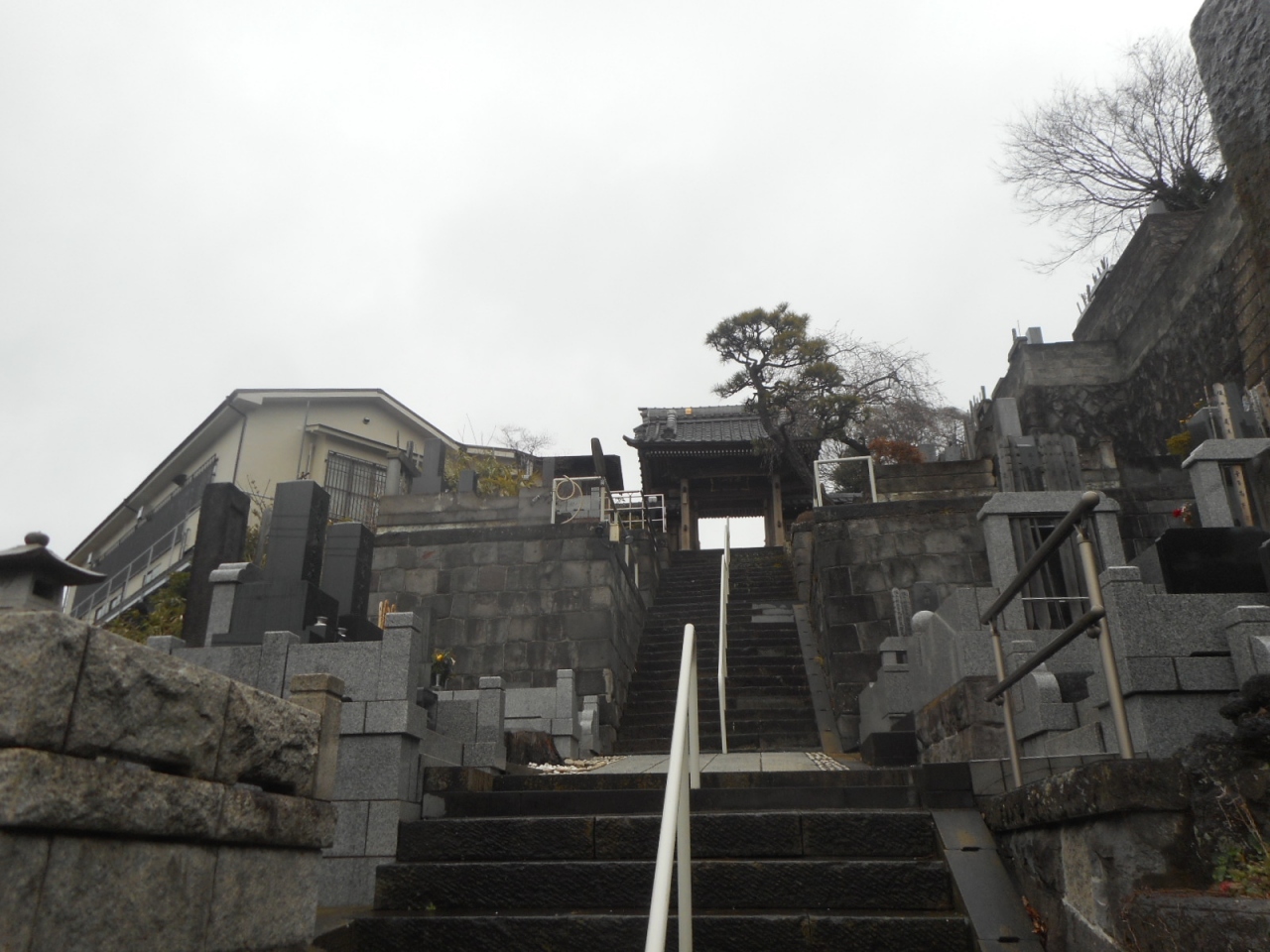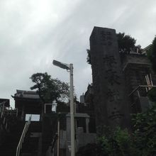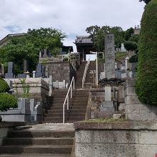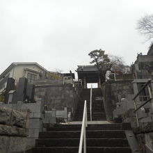 急斜面に建っていて、墓地等は斜面の急な段に建っています。