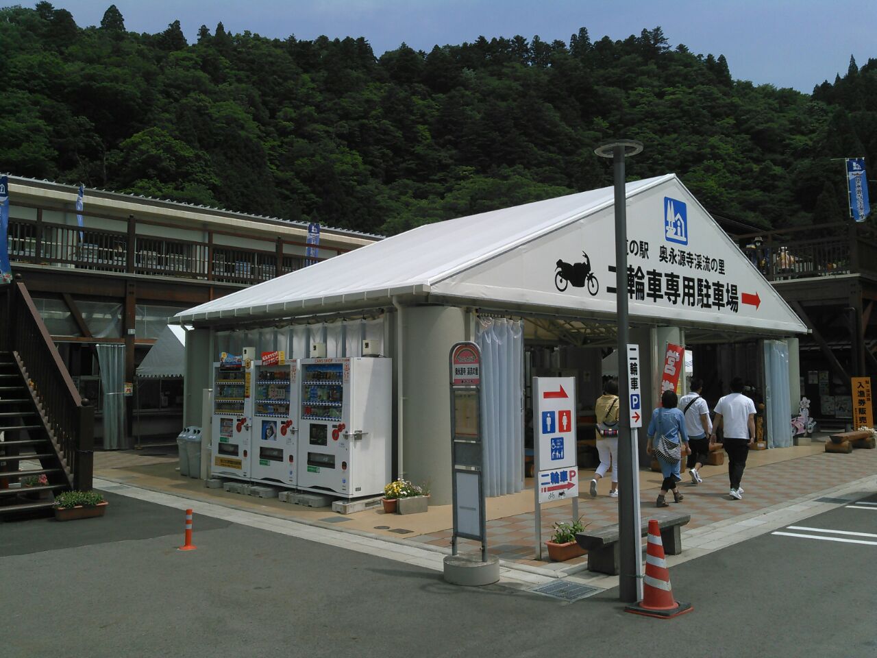 道の駅は駐車場が緊急時のヘリポートを兼ねていました「H」の文字が目立ちます。