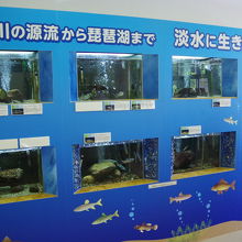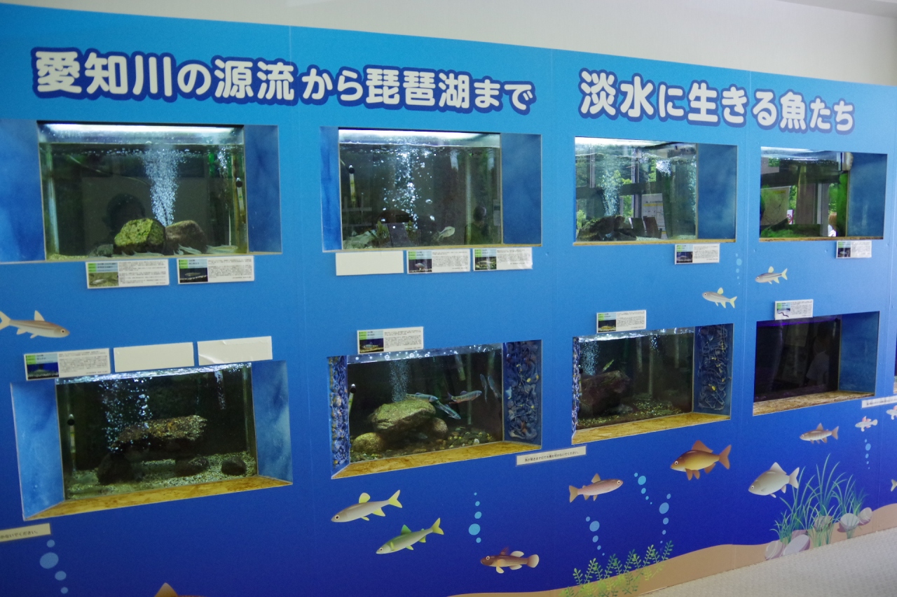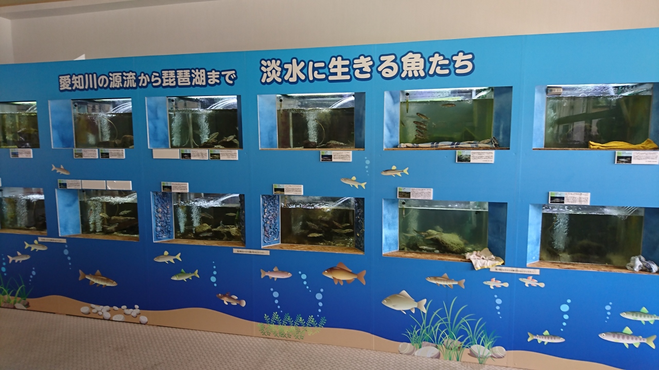 周辺はキャンプ場などが在り自然豊かな地、そして学校の跡地だった事も有ってか、周辺の生物を学ぶ事のできる様にミニ水族館があります。