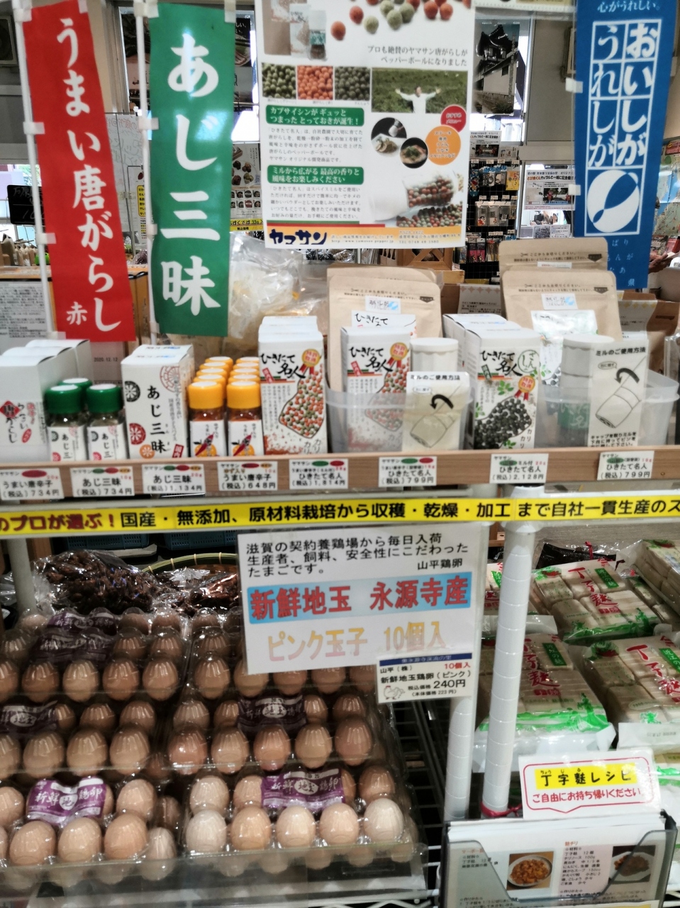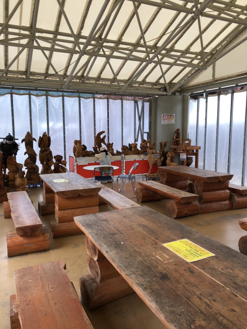 “緑と水のスペース”と名付けられた教室のように施設では、愛知川や琵琶湖の魚が展示されていたり山野草のパネル展示がありました。山の中にあるだけあって、地域住民の買い物支援や安全・安心を支える拠点としての機能を担っている道の駅だと思いました。