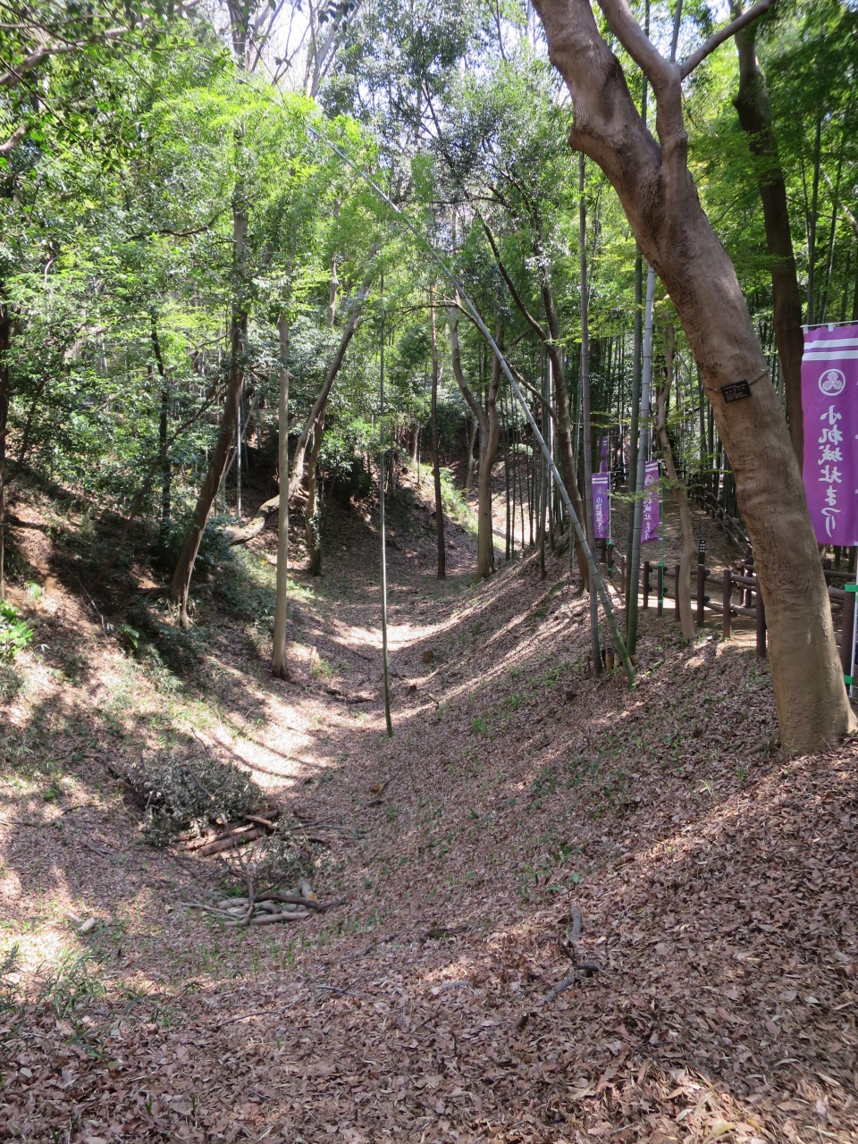 小机城の築城主は上杉氏か?築城年は室町時代、十五世紀前半といわれています。小机城は一度廃城になりますが、後北条氏が再築しそ... 続きを読むの後徳川家康入府時に廃城となります。現在は小机城址市民の森となっています。小机駅を出発し、14分程で登城口に着きます。このあと根古屋広場(城主や家臣の屋敷地で、平時に居住する)、二の丸跡や本丸跡の周りを囲むようにいたるところにある空堀、腰曲輪跡、矢倉跡、井楼跡、櫓台跡(見張り台や兵庫)、土橋らしきものが見られます。二の丸広場(二の丸跡)を通り、二の丸から空堀に降り、空堀を本丸に向かって歩きます。本丸広場の回りは土塁で囲まれています。本丸広場の南に冠木門(虎口)が建っており、そばに小机城址の石碑がたっています。門を出て少し下ると土橋があり、その先右手の小さな角広場が角馬出です。1時間16分の城散策でしたが、遺構は土塁、空堀、土橋、堀切、櫓台、腰曲輪、角馬出し等多く見られ、さすが続日本百名城で、お城ファンには見逃せない山城です。山城ですので、若干のアップダウンがありますので少し体力が必要です
